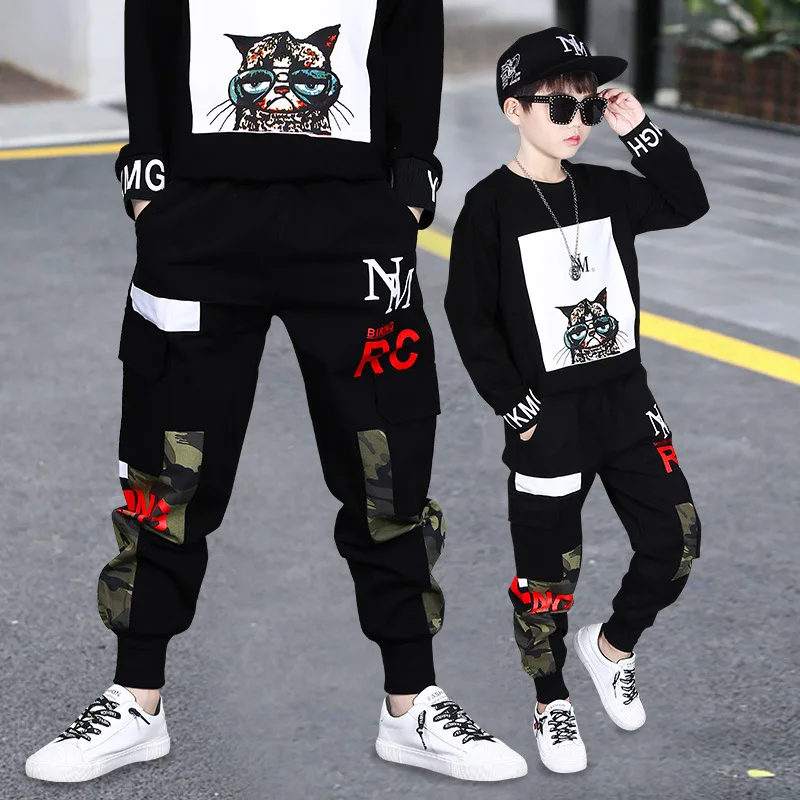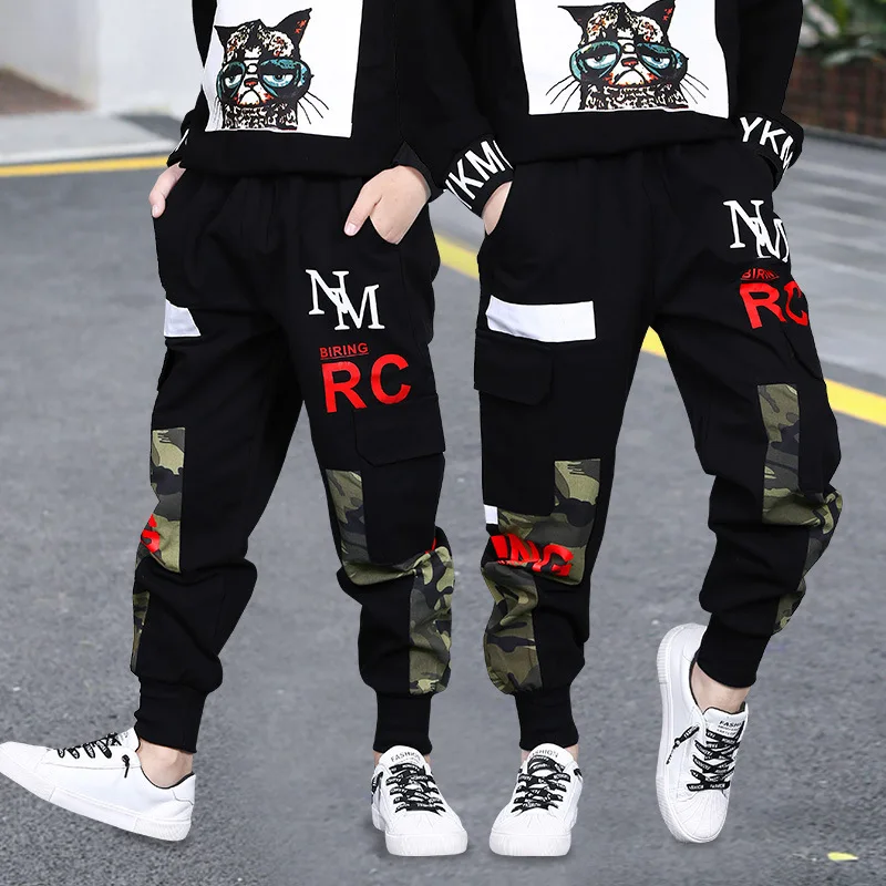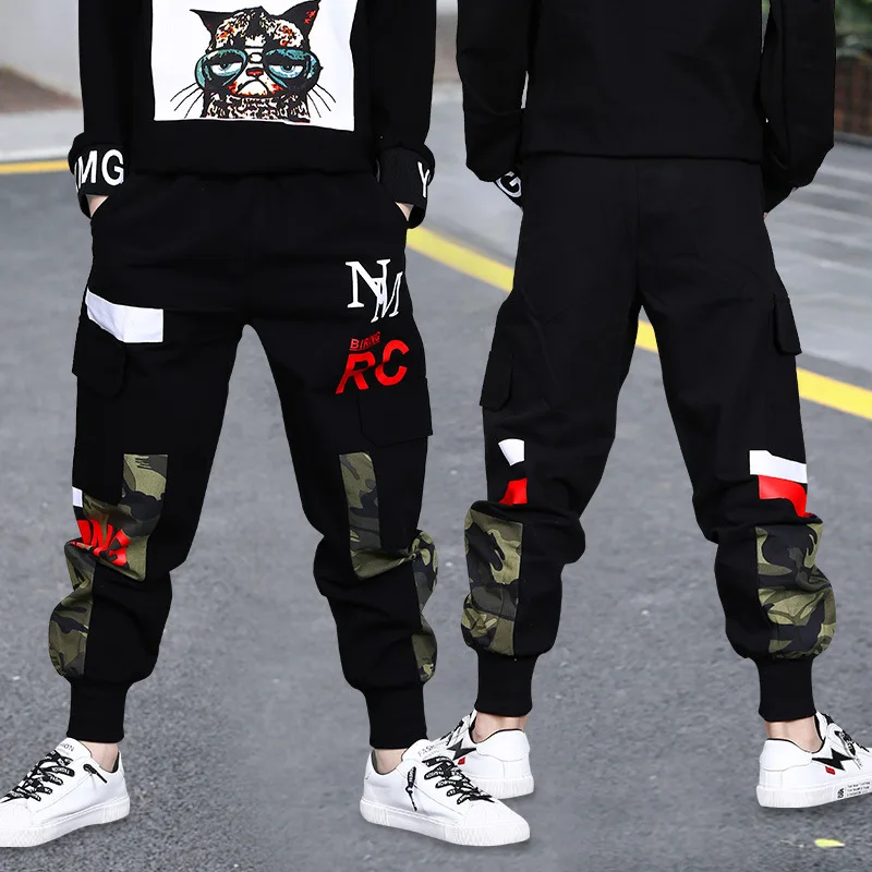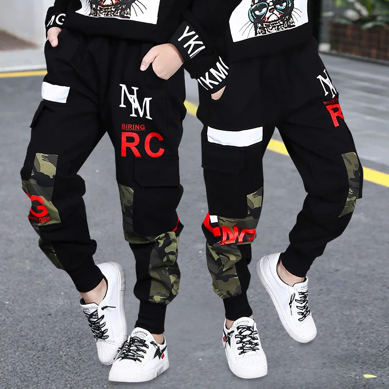 Брюки-карго для мальчиков, хлопок, камуфляжные, длинные штаны, Джоггеры для подростков, спортивная одежда, осень