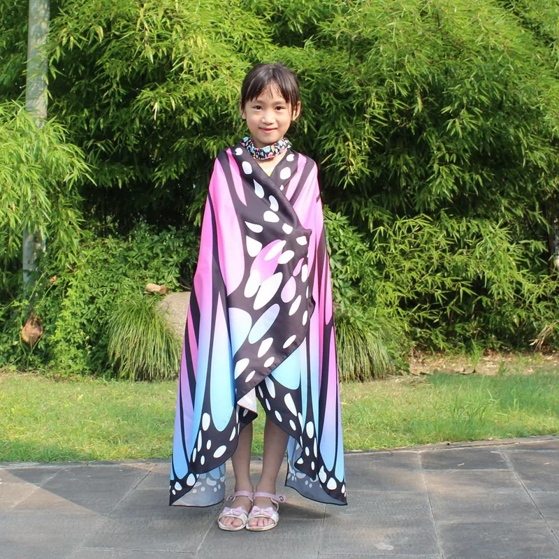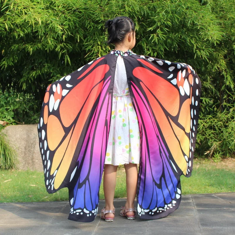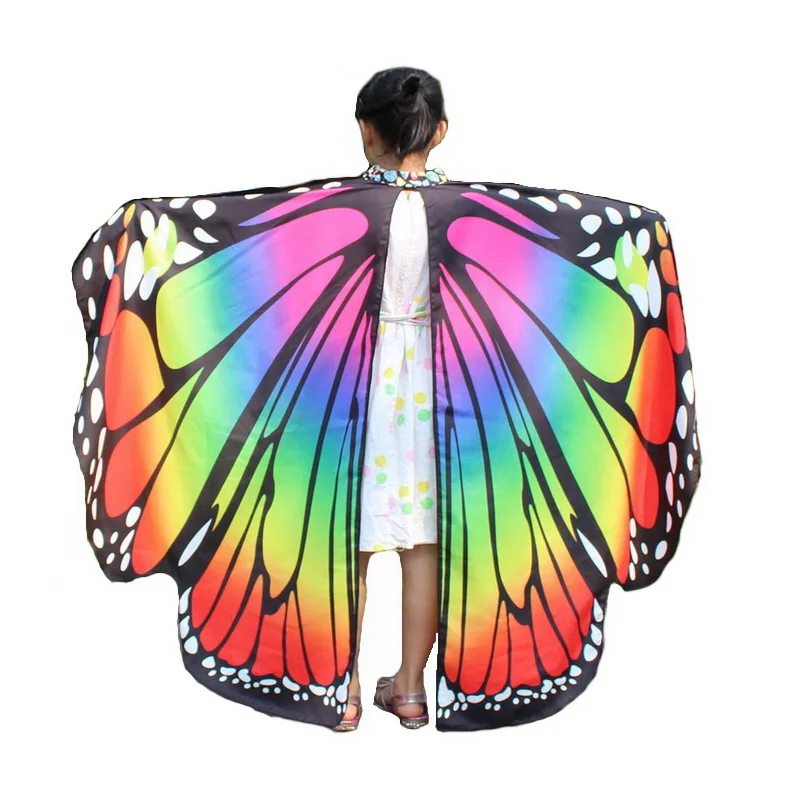 Хит, Радужный Детский костюм с крыльями бабочки, тема насекомых для девочек, Детский костюм феи для танцев, аксессуары, платье для сцены, накидка