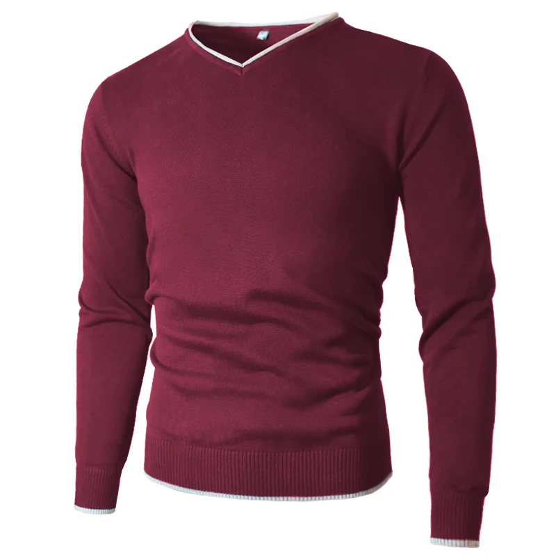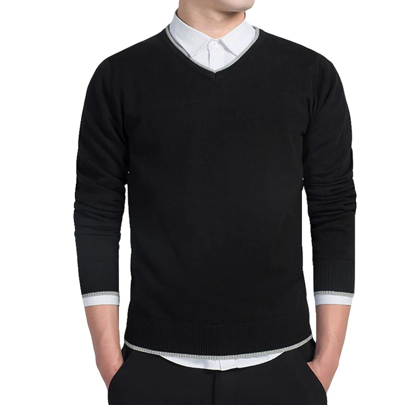 Свитер Мужской трикотажный однотонный с V-образным вырезом