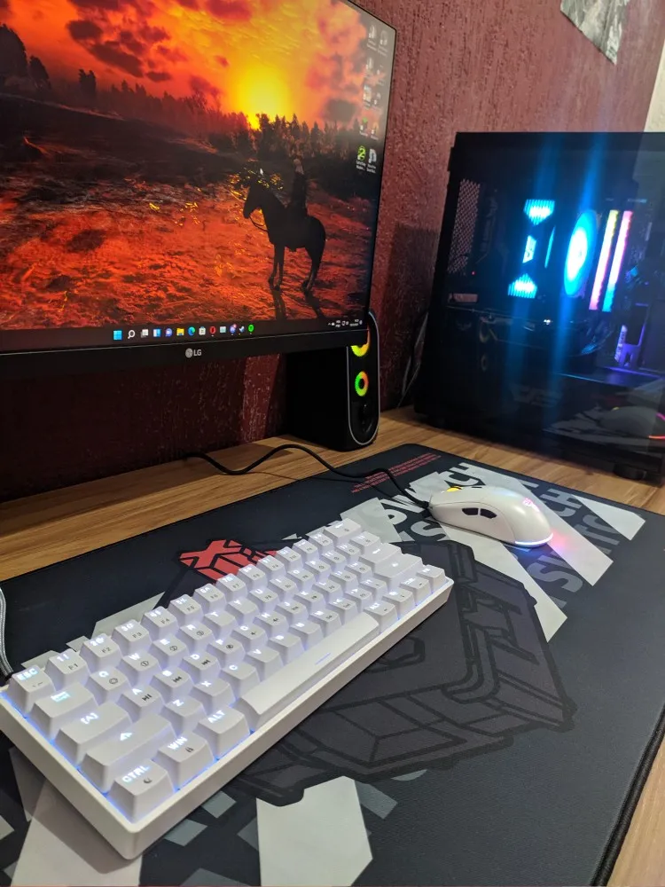 O que dizer deste pequeno/grande teclado? Antes desse carinha, passei tempos com um full size troglodita de switch azul, e logo no primeiro contato com o GK61 notei uma evolução I M E N S U R Á V E L. Escolhi pela versão com switch's reds, os quais são silenciosos e macios (depois que se acostuma, o barulho dos switch's blues soam como tiros acertando janelas de vidro). Para aqueles mais entusiastas, minha versão veio com os estabilizadores lubados e com espuma entre o case e o PCB, não sei dizer se todas as unidades virão assim, porém acredito que sim. Sobre os comandos, levei muito menos que uma semana para me acostumar, não sinto nenhuma falta do layout 100%. Paguei por ele sinceros R$220, e acredito que seja um dos melhores custo-benefícios atuais, comprem sem medo! (e fujam dos switch's blues)