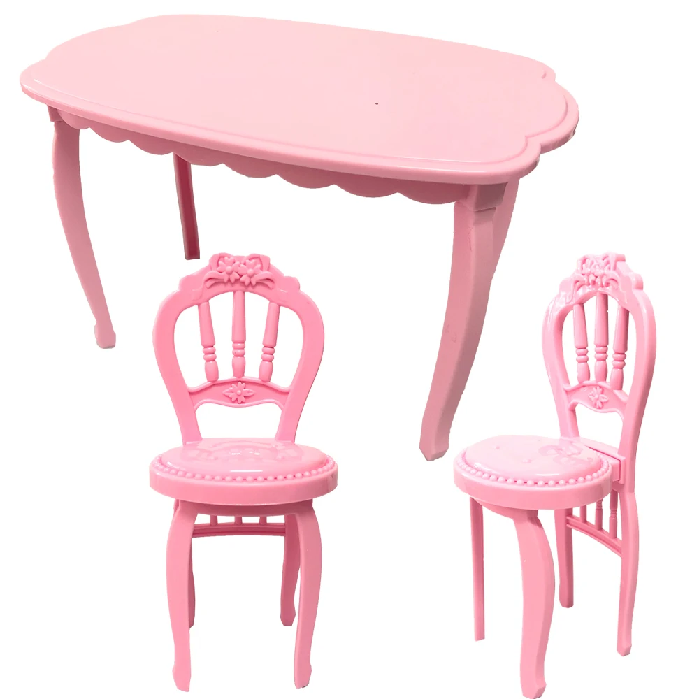 NK 3 предметаНабор аксессуары для кукол 2 модных стула + 1 современный стол для мебель для Барби обеденный дом игрушки для девочки подарок DZ