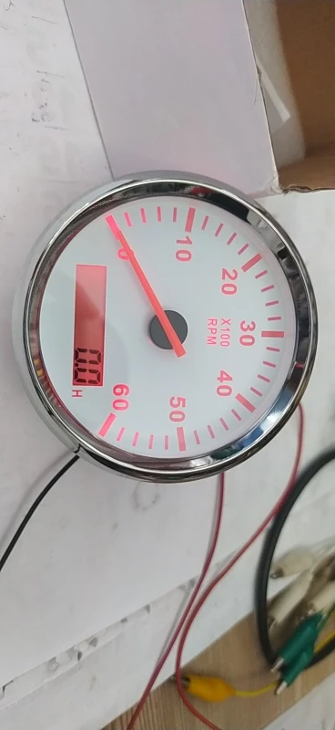 -Название: Тахометр-Красная подсветка-Высокая точность-Размер: 92x50 мм-Напряжение: 12 В/24 В-Диаметр установки: 85 мм-Рабочий ток: ≤ 100 мА-Коэффициент скорости: 1 ~ 300 регулируемый-Функции: Текущий Тахометр/об/мин и час-Режим работы: ЖК-дисплей, шаговый двигатель-Тахометр подходит для автомобиля/грузовика/лодки/дизельного генератора/бензинового двигателя
