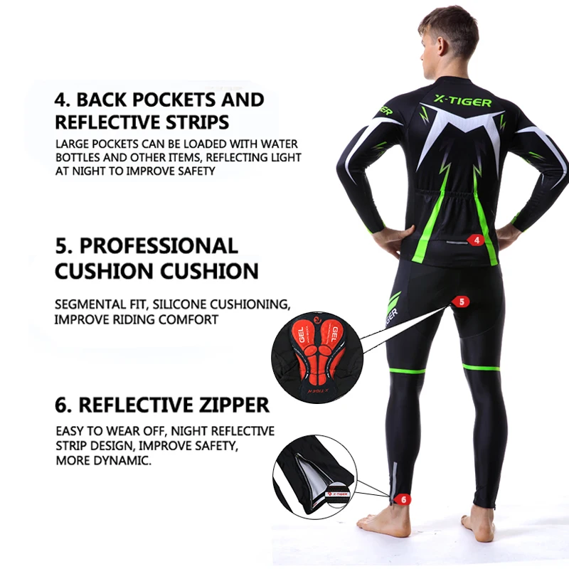 Комплект трикотажных изделий для велоспорта X-Tiger, с гелевыми вставками