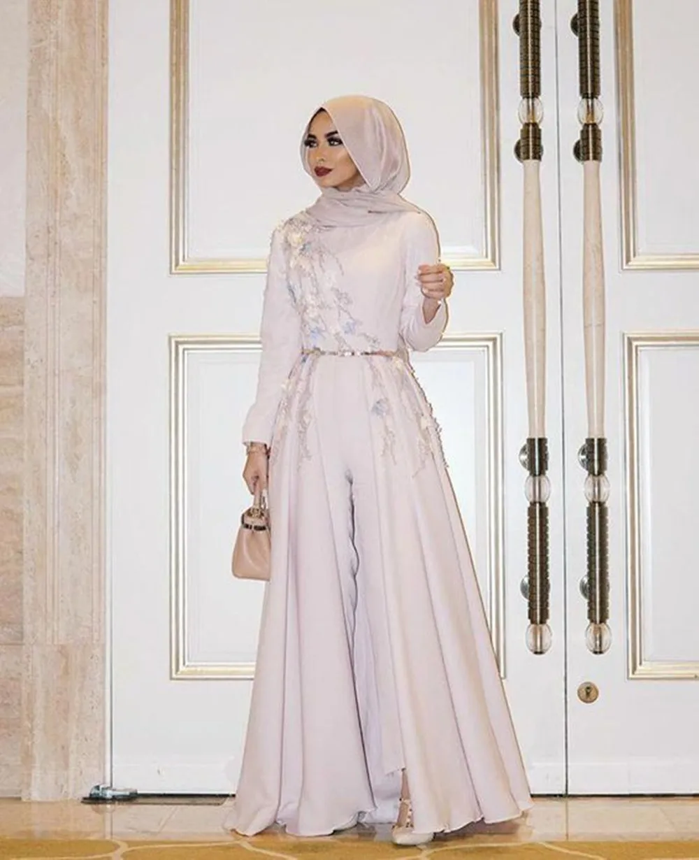 Платье женское вечернее с длинным рукавом и вышивкой, в мусульманском стиле