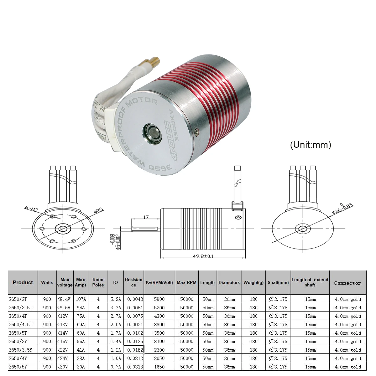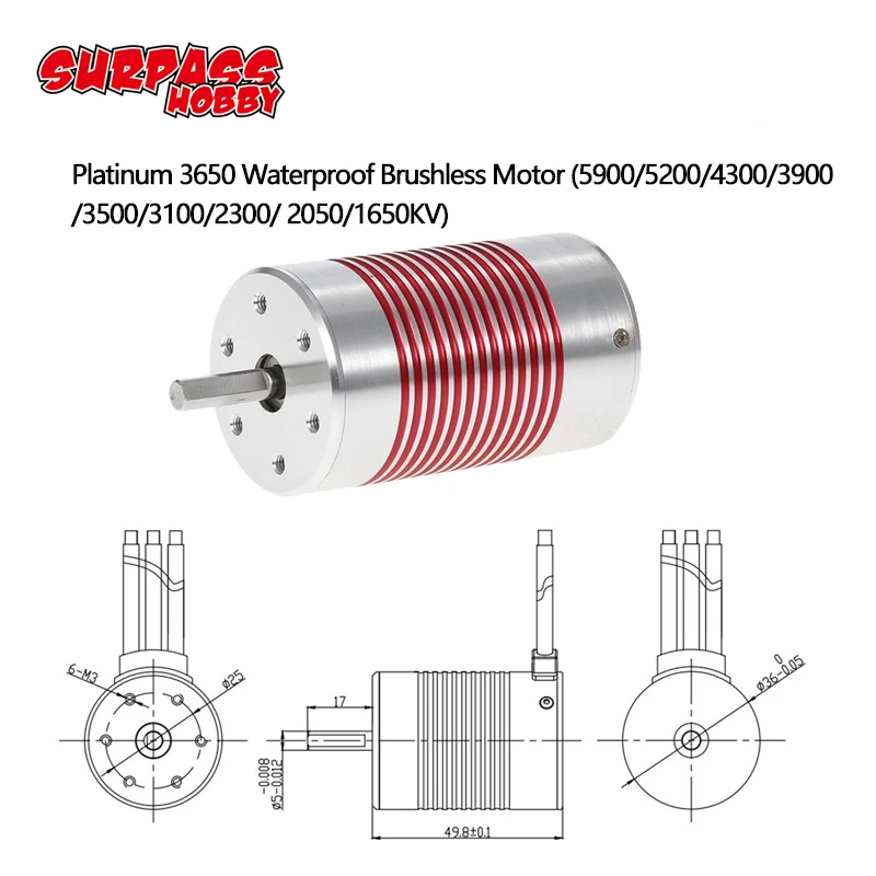 Платиновая Водонепроницаемая серия 3650 1650KV 2050KV 2300KV 3100KV 3900KV 4300KV 5200KV 5900KV бесщеточный двигатель для 110 RC Car