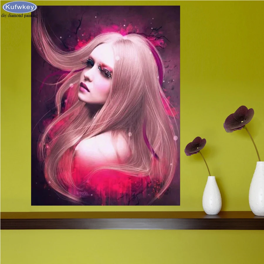 Diy Алмазная картина стежка крест красный волос вышивка стразами Девушка полный квадратный круглый дрель Алмазная мозаика Стразы картинки