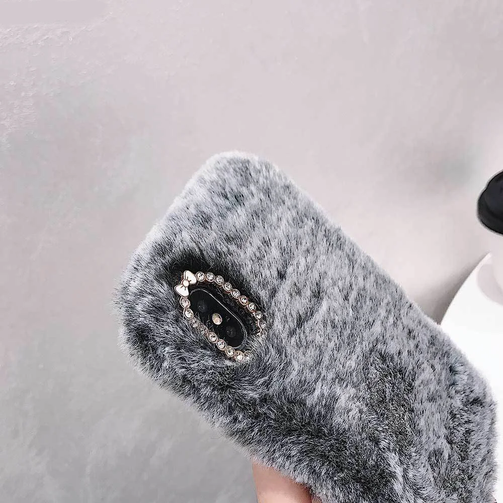 Милые теплые плюшевые чехлы из кроличьего меха, чехлы с бриллиантам...