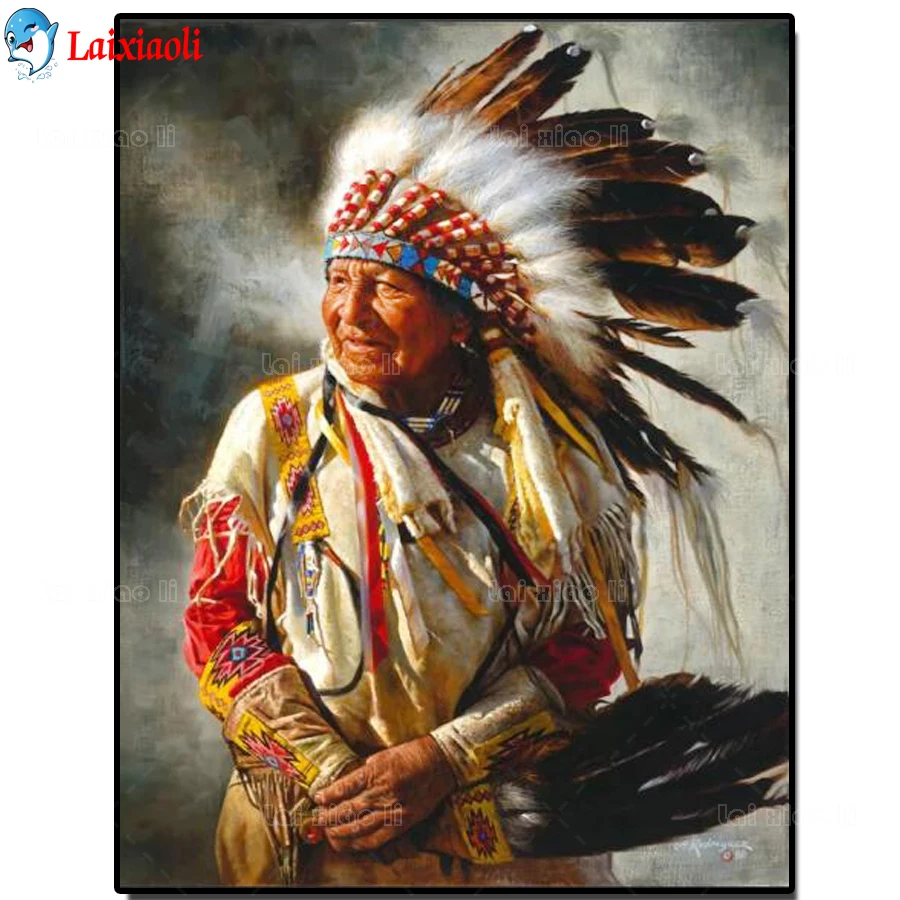 5d diy индийские женщины племени родного алмаза картина полная дрель квадратная круглая Сделай Сам Натуральное перо американская мужская Алмазная вышивка