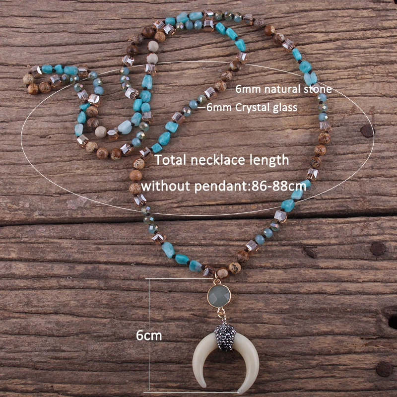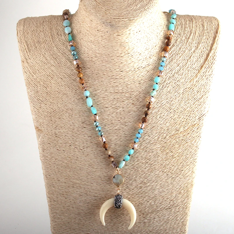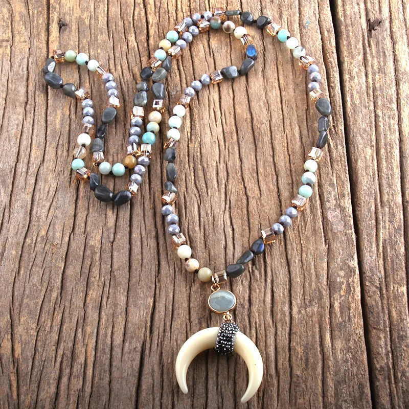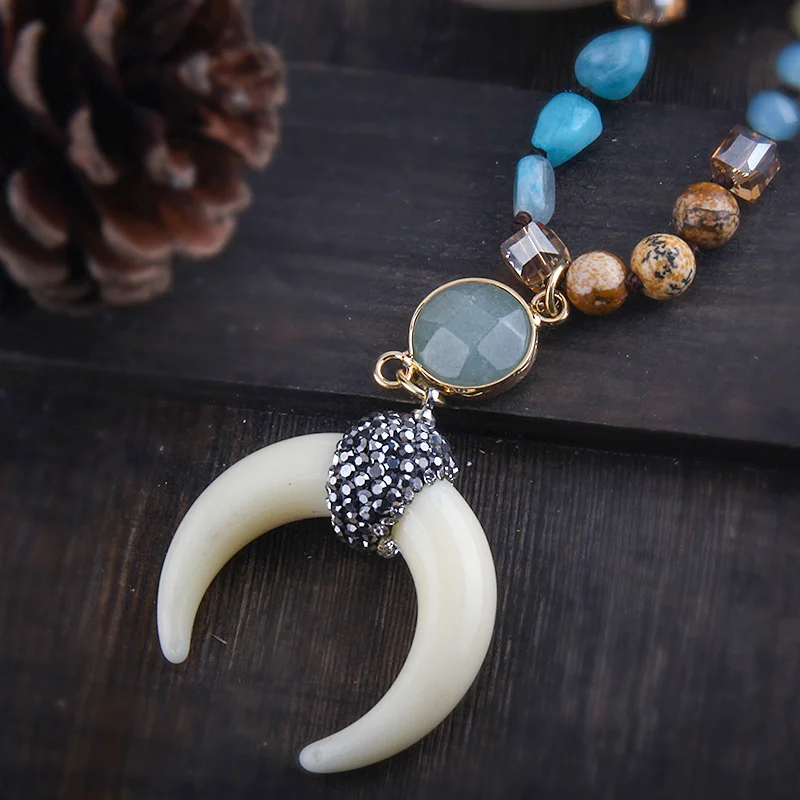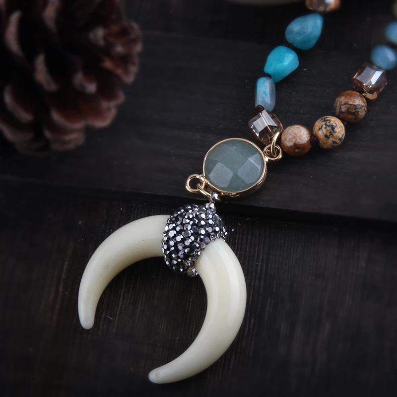 RH модные богемные украшения разные формы натуральные камнистеклянные кристаллы много камней узловатый бычий Рог лунное ожерелье женское подарок