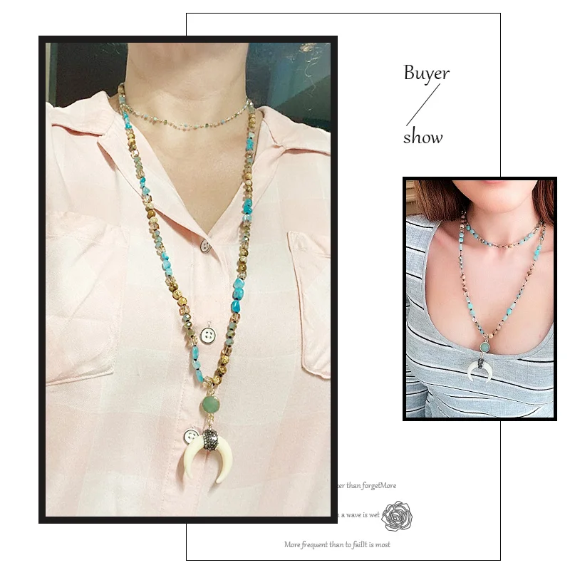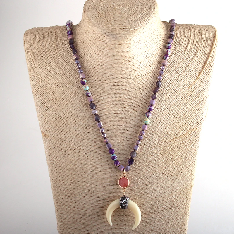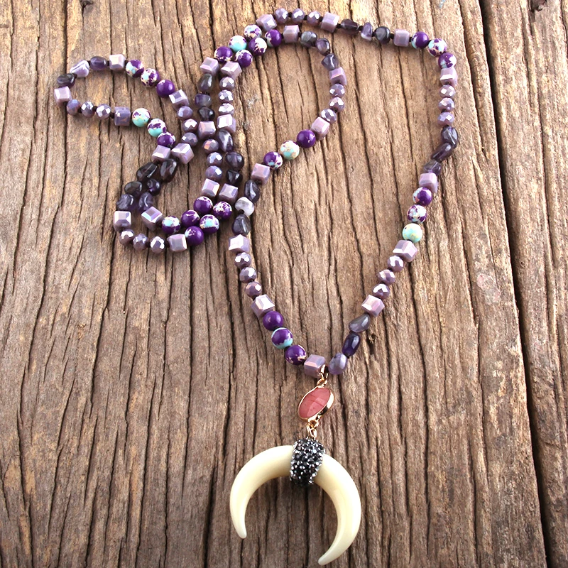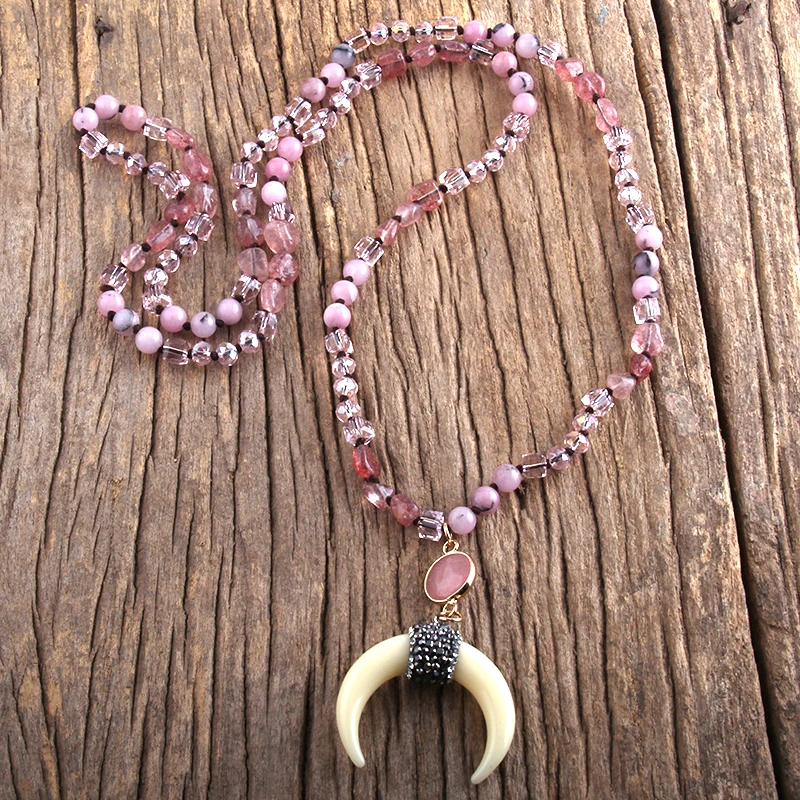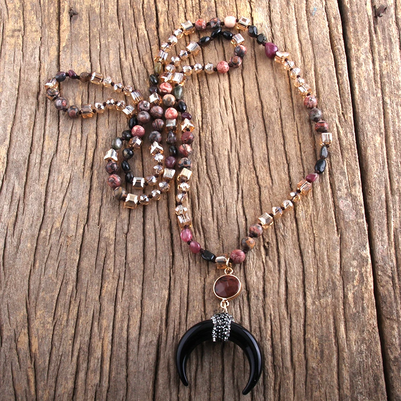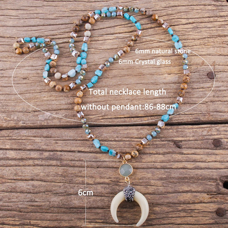RH модные богемные украшения разные формы натуральные камнистеклянные кристаллы много камней узловатый бычий Рог лунное ожерелье женское подарок