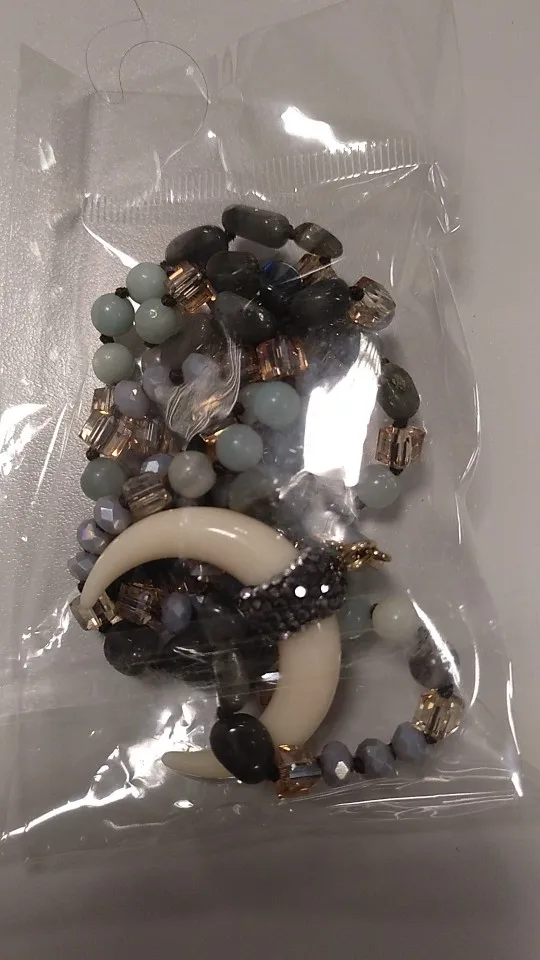 Выглядит так же, как на фото. Но костяная часть из пластика:/все еще хорошие камни!