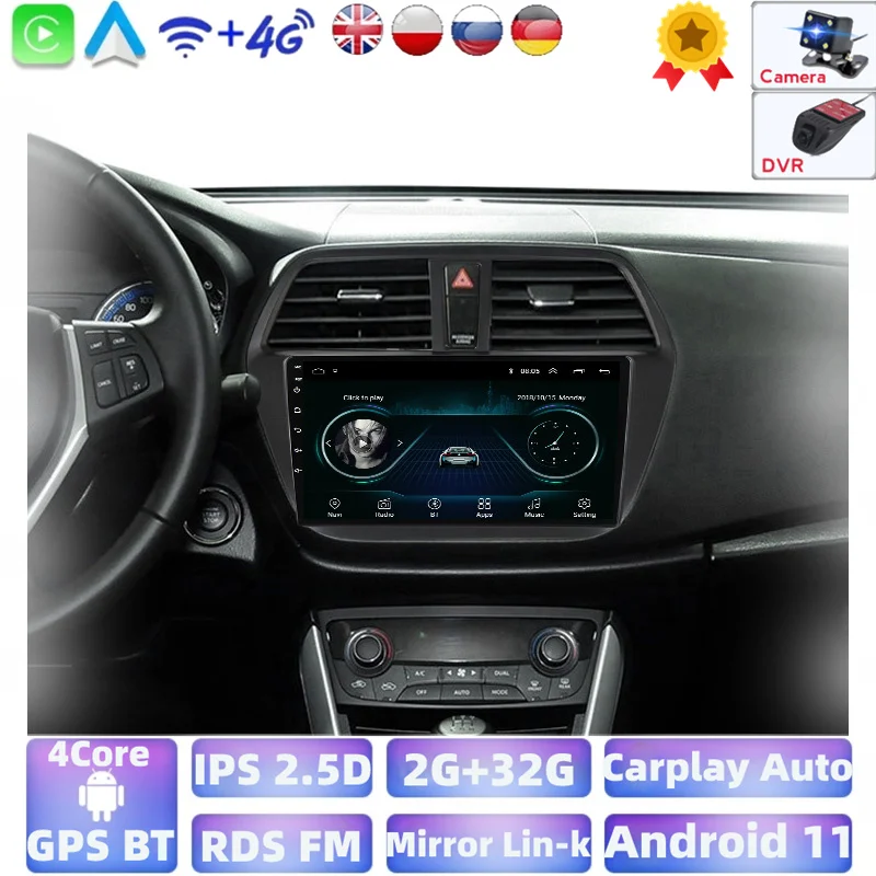 Автомобильный мультимедийный плеер, Android, 2 Гб + 32 ГБ, 9-дюймовый 4-ядерный процессор, HD-сенсорный экран, Wifi, GPS, для Suzuki S-Cross SX4 2014, 2015, 2016, 2017