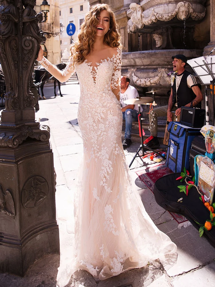 LORIE изысканные свадебные платья Русалка с прозрачным вырезом Аппликации кружевные платья невесты принцессы Свадебные платья с длинным рукавом