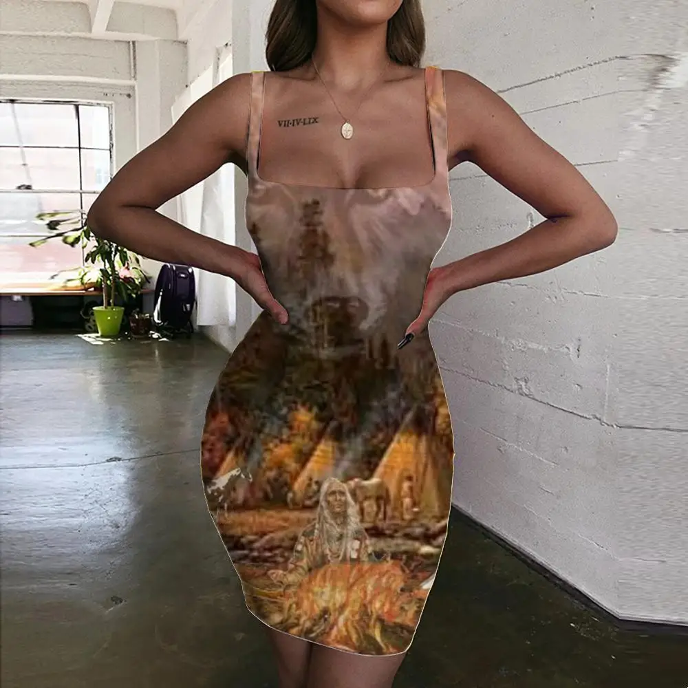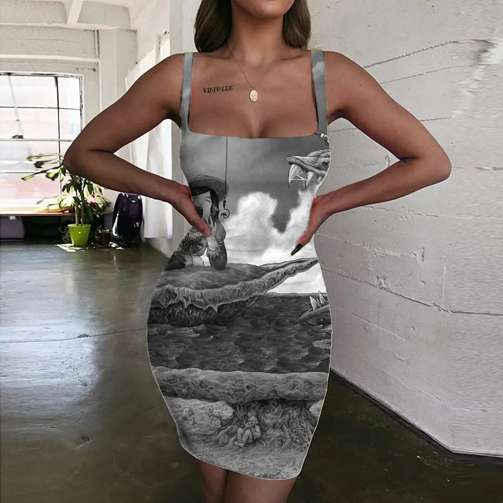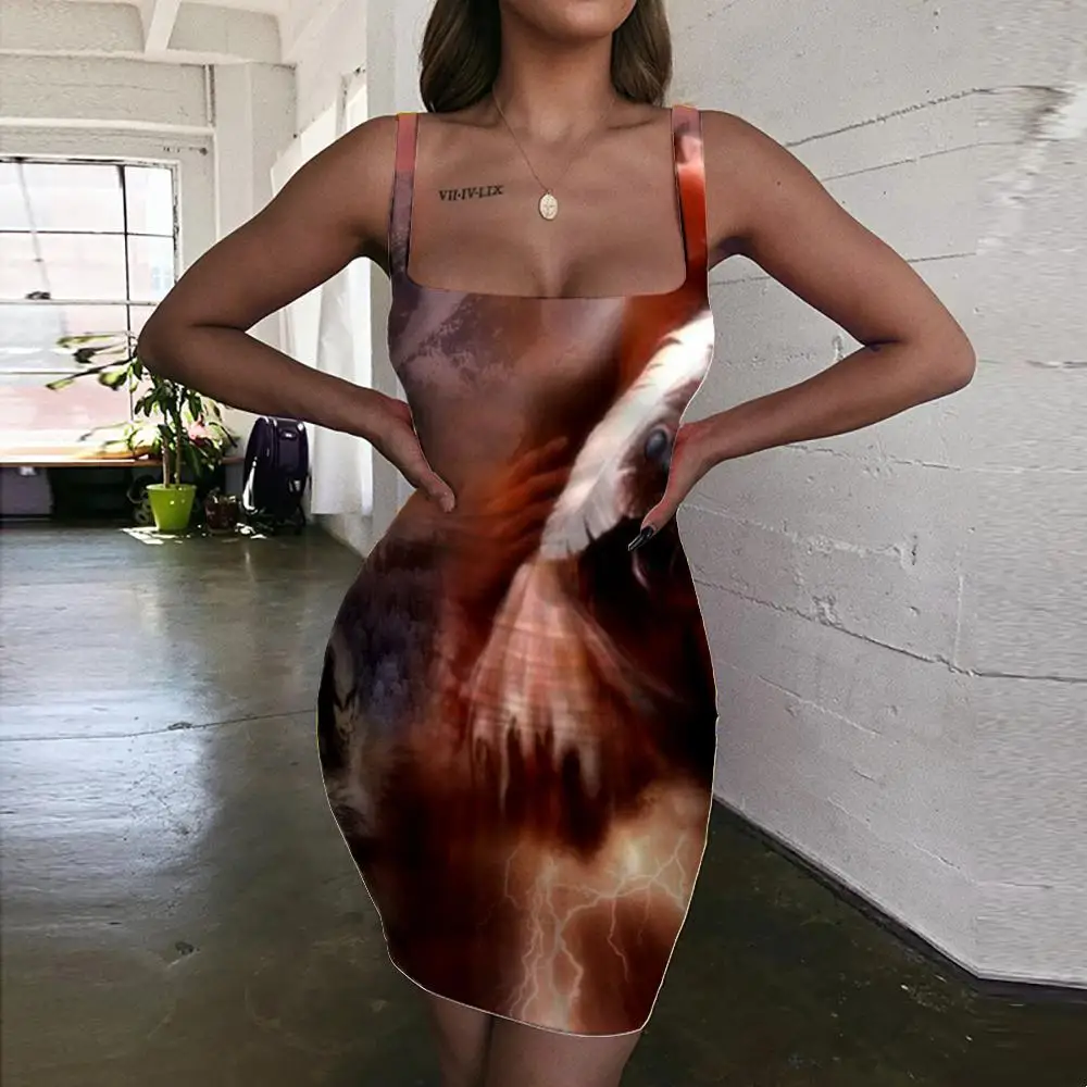 Женское платье с лямкой на шее KYKU, винтажное платье с принтом волка без рукавов, лето 2019