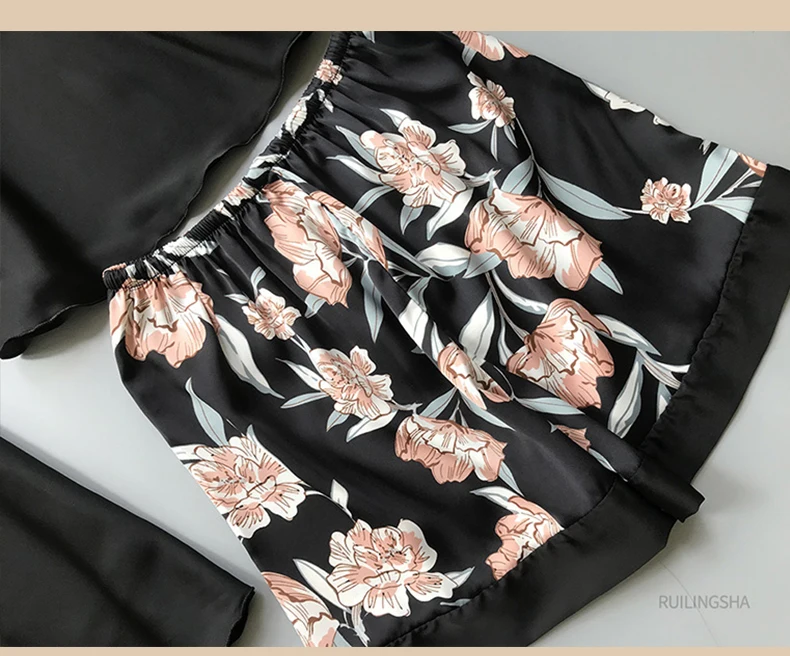 Весна-Осень 2020, женский Шелковый пижамный комплект с нагрудными п...