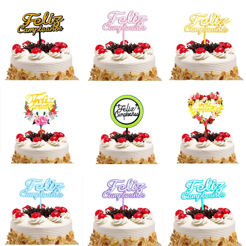Фигурки для торта Spainish Feliz Cumpleanos с днем рождения акриловый Кекс для торта флаги для детского душа декор для торта для выпечки DIY Вечерние