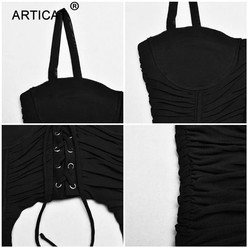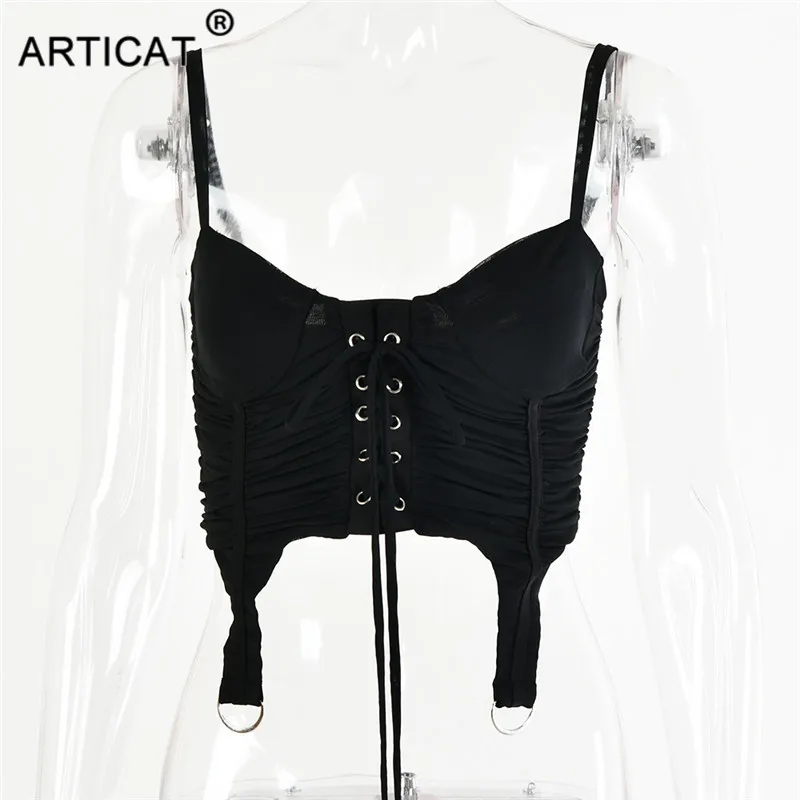 Женский укороченный топ на молнии Articat, однотонный необычный сексуальный топ на завязках с открытой спиной, летний бандажный корсет-бюстье