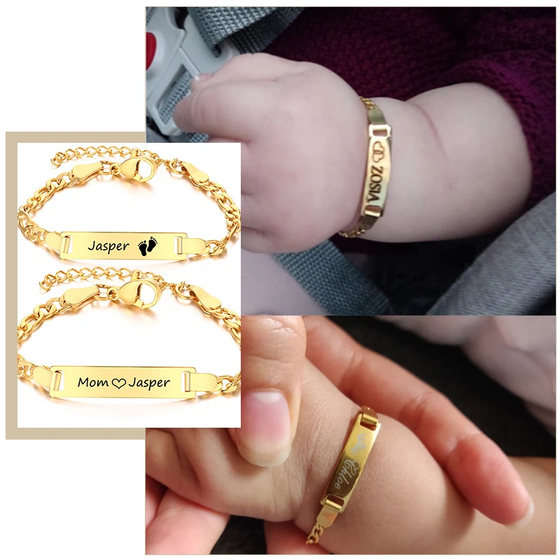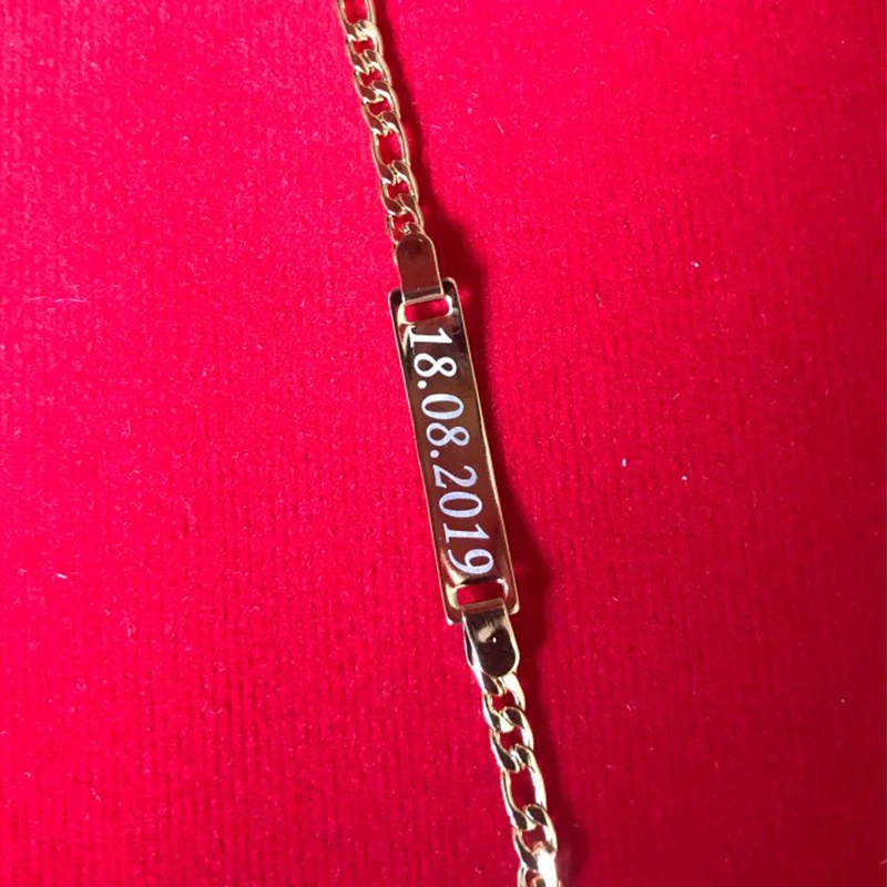 Custom Engrave Mom Baby Names Birthday Date Bracelets Figaro Link Chain Smooth Bangle Personalize Family Love Gifts Jewelry