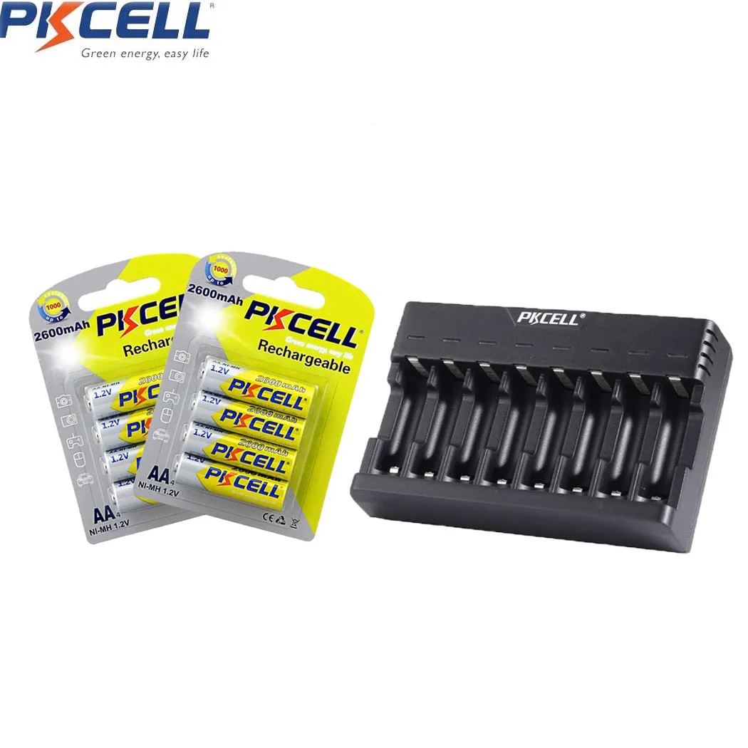 8 шт.2 карты PKCELL 1,2 в AA Ni-MH аккумулятор 2600 мАч AA перезаряжаемые батареи + зарядное устройство для батарей AAAAA NICDNIMH