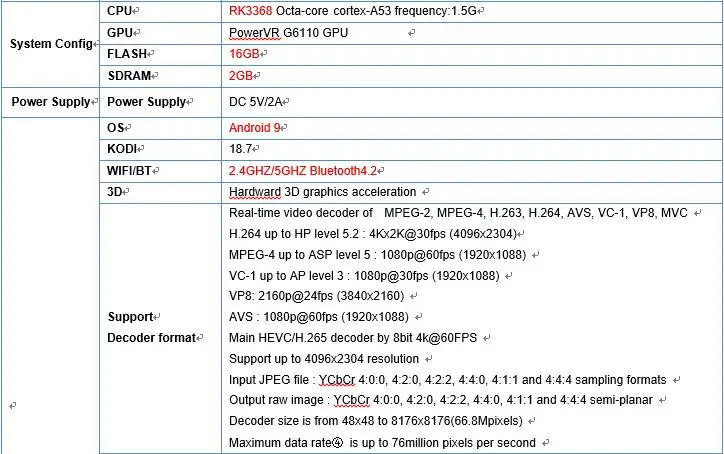 5. Поддержка 10/100M Ethernet, 2,4 и 5G двухъядерный процессор Wi-Fi, BT4.2;