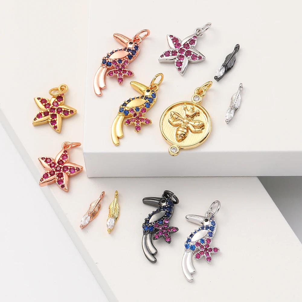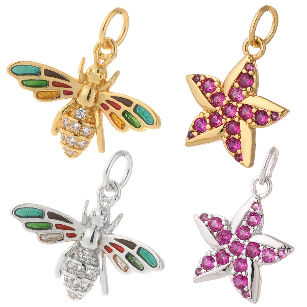 Подвески в виде пчелы для изготовления ожерелья, аксессуары для изготовления золотых морских звезд, подвески для самостоятельного изготовления, металл, медь, CZ, циркон, отверстие 5 мм