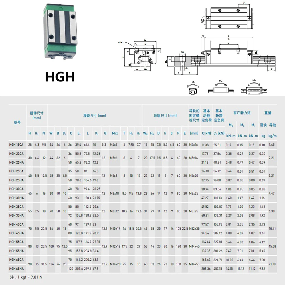 Квадратная линейная направляющая HGR20, HGR15, HGR25, HGR30, 1 шт.