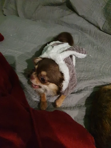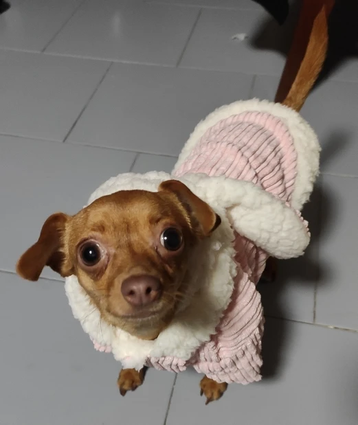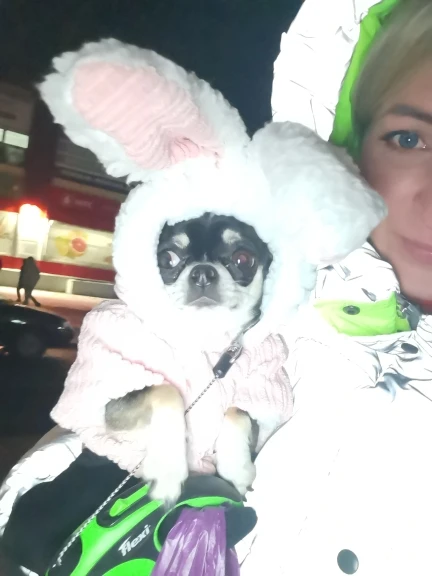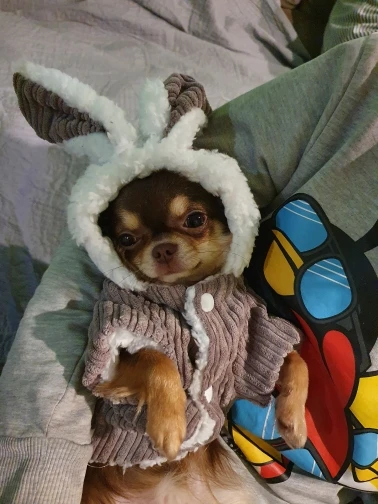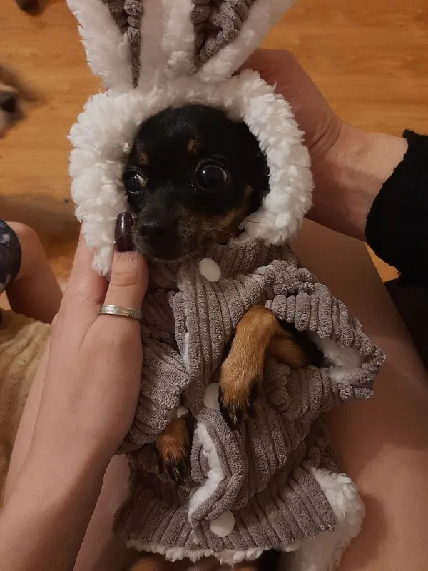 Для чихуахуа размером около 3 кг, размер М, маленький, длинный, хороший, но широкий, как у очень тонкой собаки