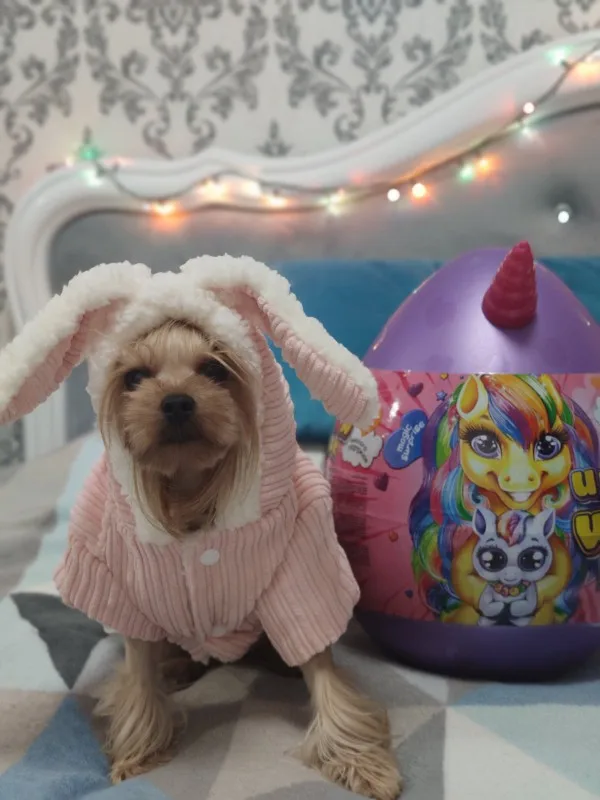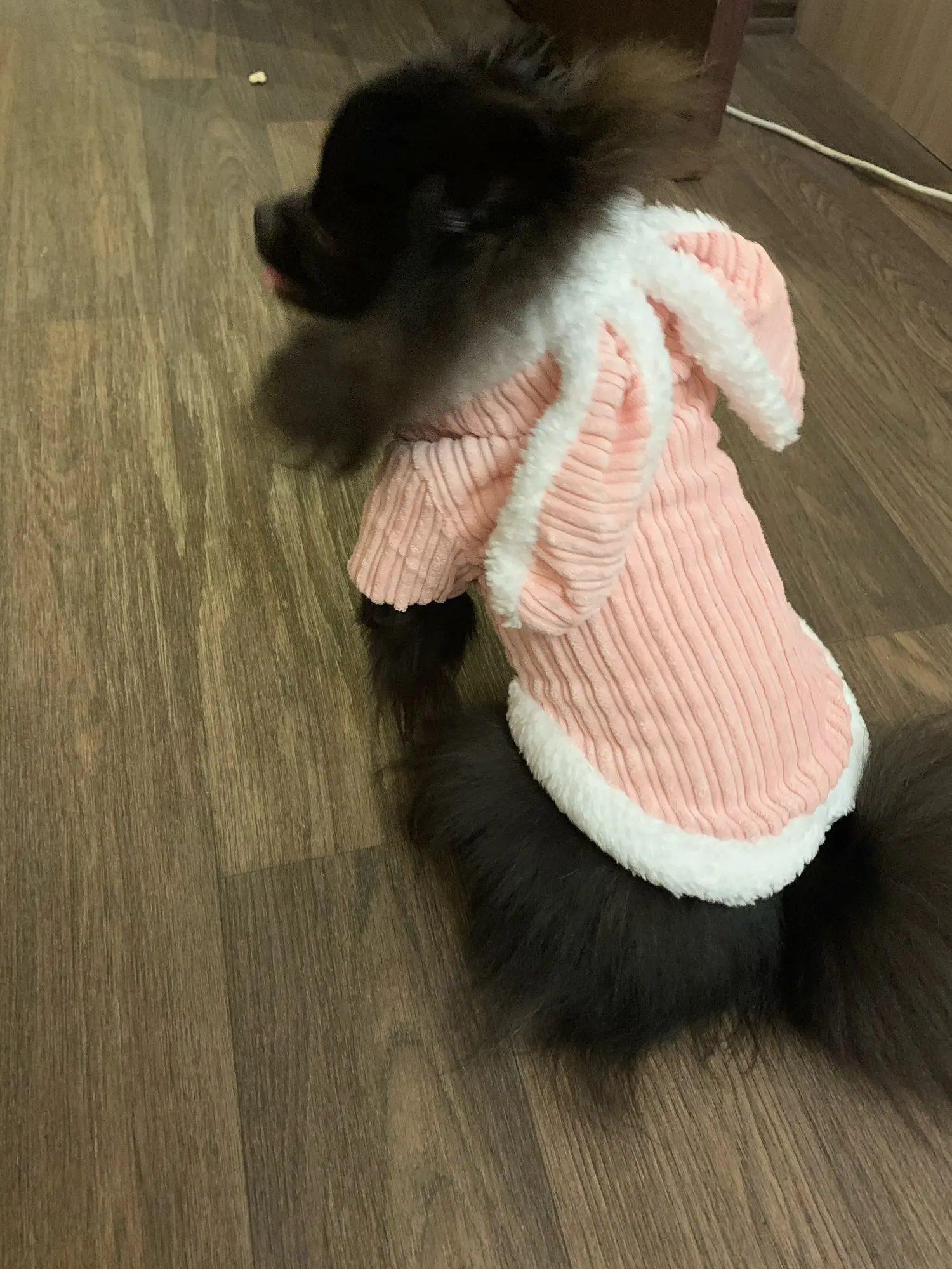 Куртка для собак, Осень-зима, теплая, милая одежда, милый костюм с кроликом, двуногая, на хлопковой подкладке, наряд для собак