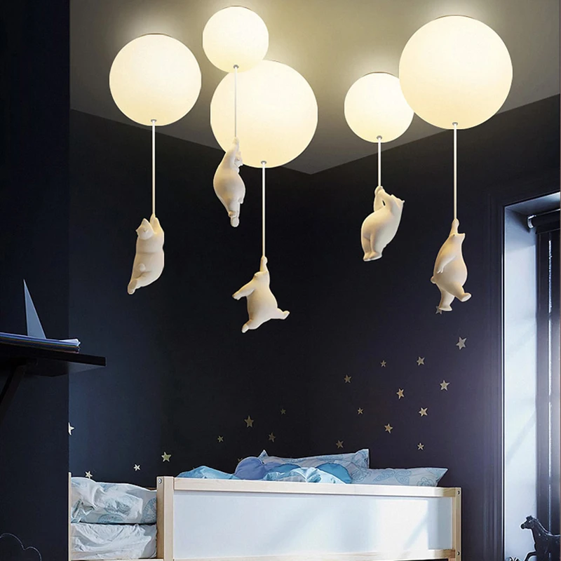 Скандинавский минималистичный потолочный светильник с белым медведе...