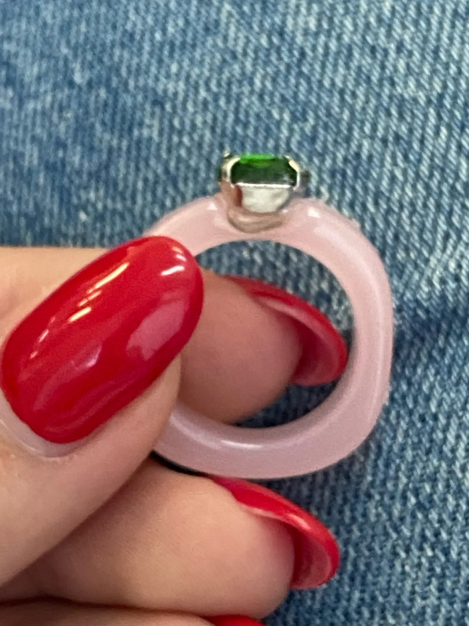 Зелёное кольцо очень красивое ,но оказалось велико,слетело с пальца и потерялось ...