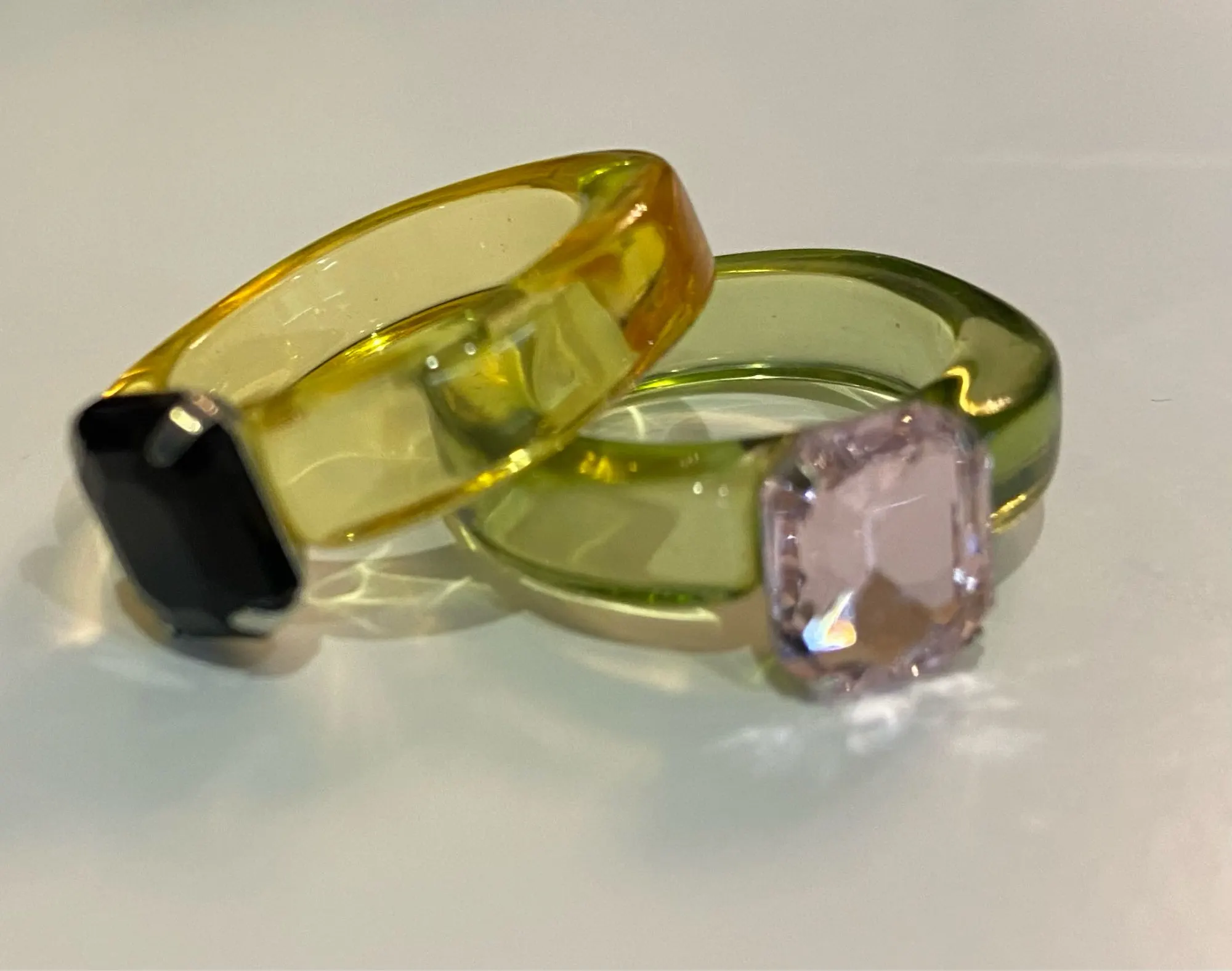 Кольца для женщин и девочек HUANZHI, прозрачные, акриловые, разноцветные, прямоугольные, простые, 2020