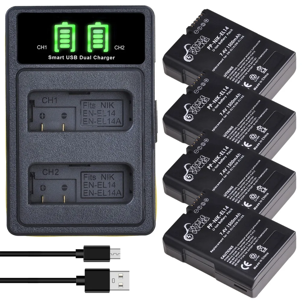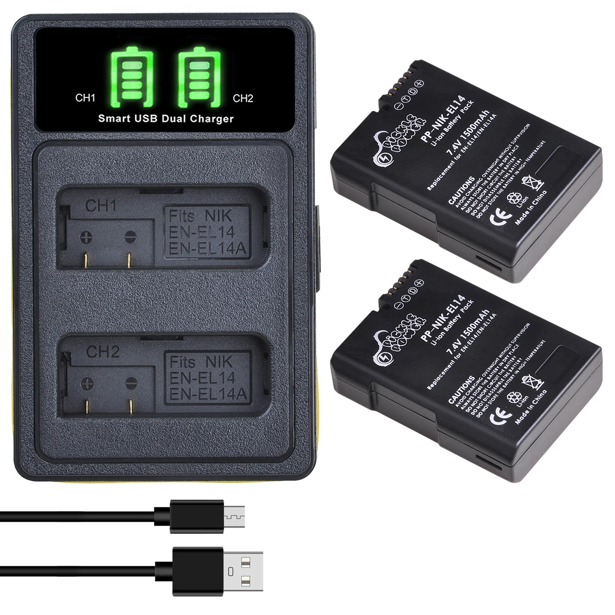 1500 мАч EN-EL14 батарея EN-EL14a + зарядное устройство Type-C для Nikon P7800 P7100 D3400 D5500 D5300 D5200 D3200 D3300 MH-24