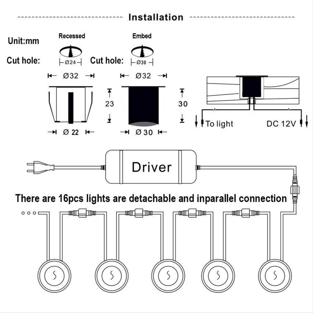 1. Модель: светодиодный светильник2. Трансформатор Вход: 100-240VAC В переменного тока, 50/60 Гц3. Светодиодный светильник на палубе Вход: 12 В постоянного тока4. Мощность: 0,6 вт/шт5. Светодиодный цвет: теплый белый и натуральный белый6. Светодиодный источник: SMD28357. Световой поток: 50 лм (однослойный светильник)8. Материал: нержавеющая сталь + ABS9. Размер: d32 мм * 23 мм (диаметр * глубина)10. Черный защиты оболочки: 29*37,5 мм (диаметр * глубина)11. Открытие: 22 мм12. Водонепроницаемость: IP6713. Цветовая температура: натуральный белый: 4500K теплый белый: 3000K14. Длина кабеля: около 100 см/39,4 дюйма (на светильник)15. Автоматическая Настройка («подключи Длина: около 2,5 м-Применение:Твердый деревянный пол; Ламинат; Ковер; Керамическая плитка; Натуральный камень; Кварцевое напольное покрытие (внутри и снаружи) (заменить потолок, небольшой вниз светильник)