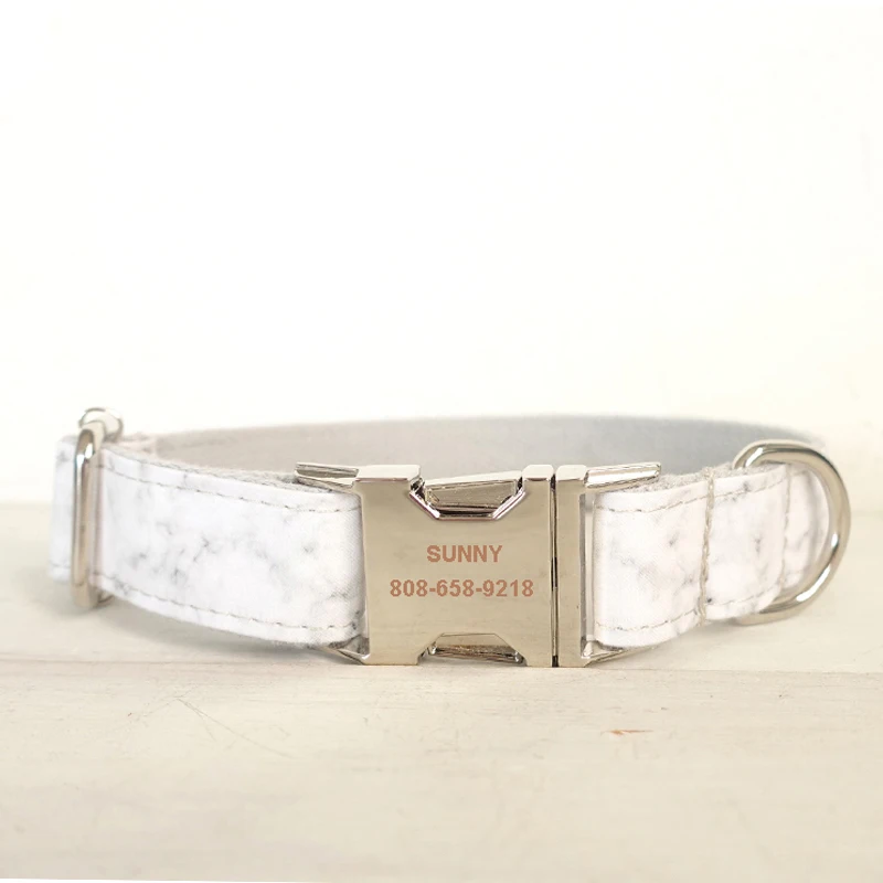 Собачий ошейник, регулируемый, персонализированный, прочный, Нейлоновый, без гравировки имени, с белым мраморным узором, роскошный подарок, собачий ошейник со свинцом