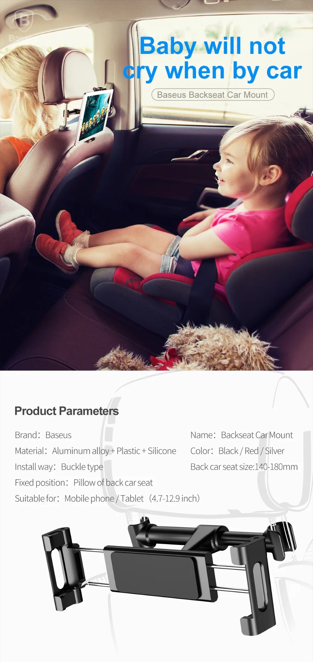 Автомобильный держатель Baseus для планшета, с креплением на заднее сиденье, для iPad 4,7-12,9 дюймов
