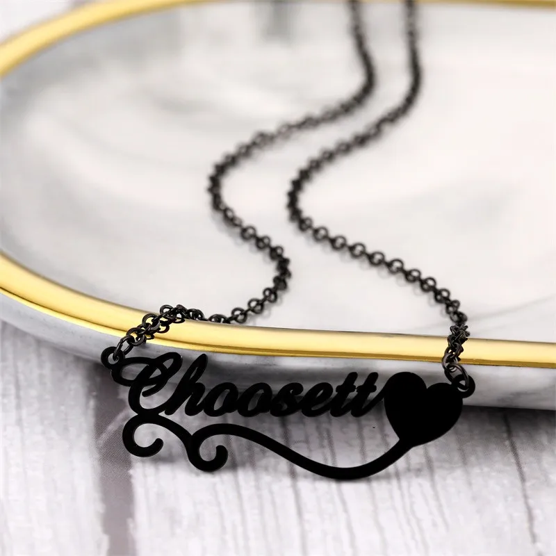 Ожерелье с именем для женщин и мужчин, ювелирное изделие из нержавеющей стали черного цвета с именной табличкой и надписью на заказ