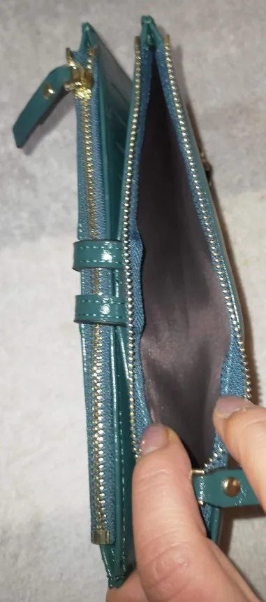 Циповете се отварят трудно - искат смазване, самото портмоне е твърдо и трудно се разтваря, за да се вземат монети, например. Моделът е хубав, копчето държи добре, пристигна бързо.