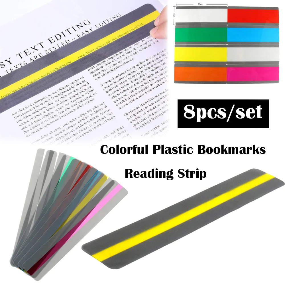 8 шт.компл. цветные пластиковые закладки для чтения, переносные флуоресцентные вспомогательные материалы для чтения из ПВХ, подсветка для людей Dyslexia, подарок