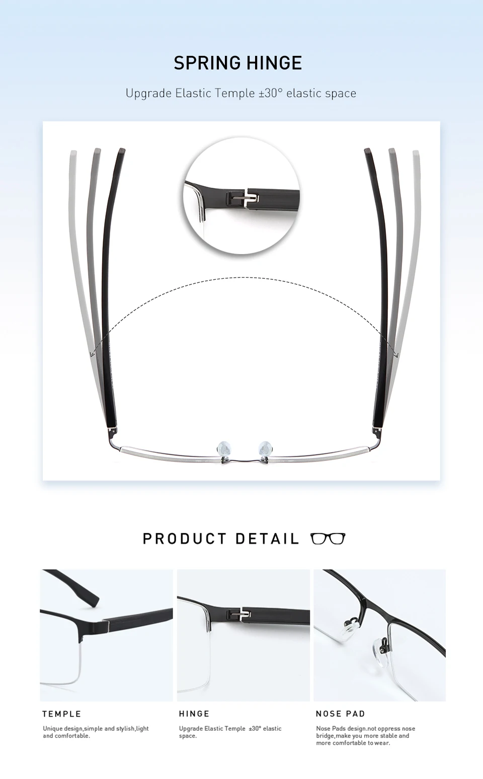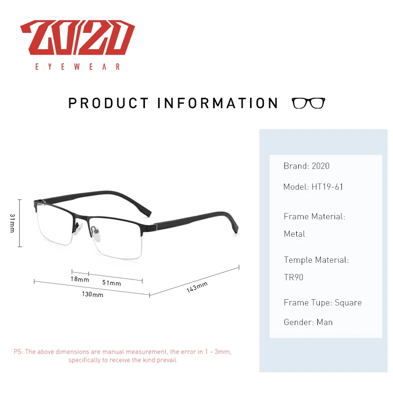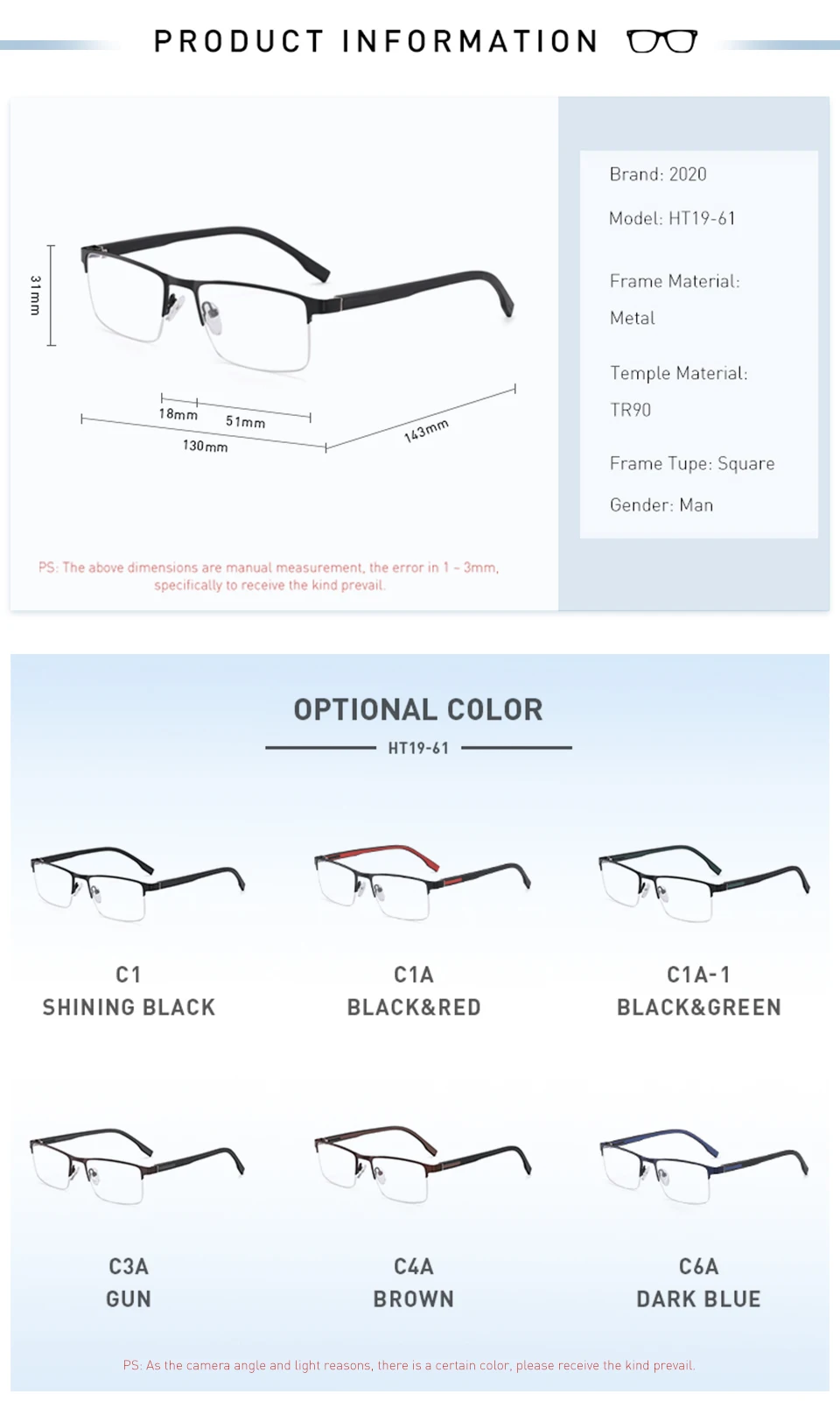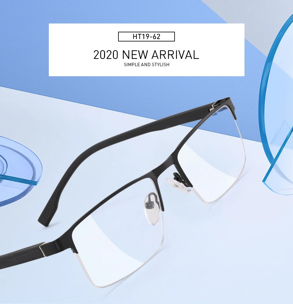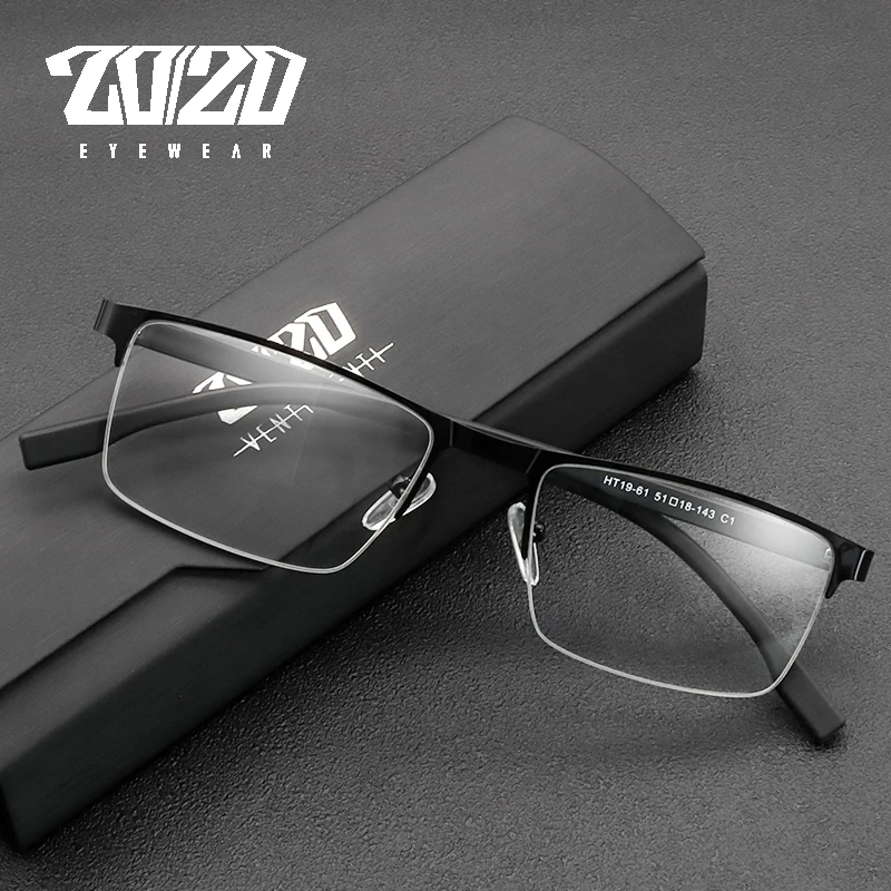 Мужские квадратные очки, ультралегкие очки в полуоправе из титана, по рецепту, при близорукости, 2020, HT19-61