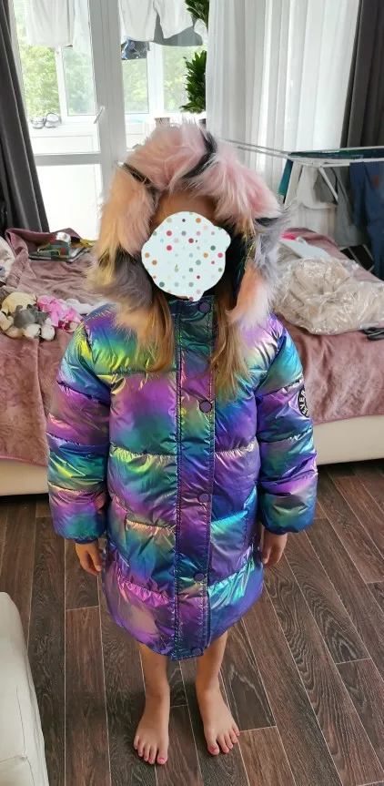 Шикарная куртка, очень теплая на вид, выглядит очень красиво, нитки не торчат. отправили быстро, дошло в Казахстан ровно за месяц. Размеру видимо соответствует, так как на семилетнего ребенка рост 126 см большое. но мы и брали на вырост, поэтому все нормально.