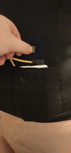 사이즈가 좀 작게 나온듯. 재질은 신축성있고 부드러워 맨살에 입어도 될듯한 촉감임. 다른 usb 조끼에 비해 온도는 낮으나 얇은옷 위에 입으면 딱 적당.