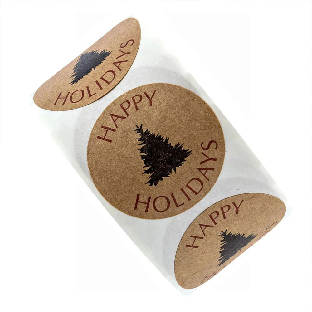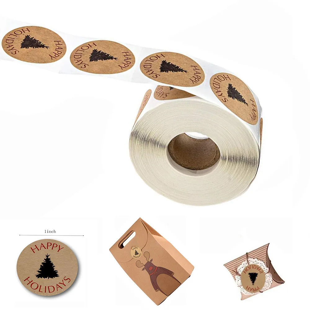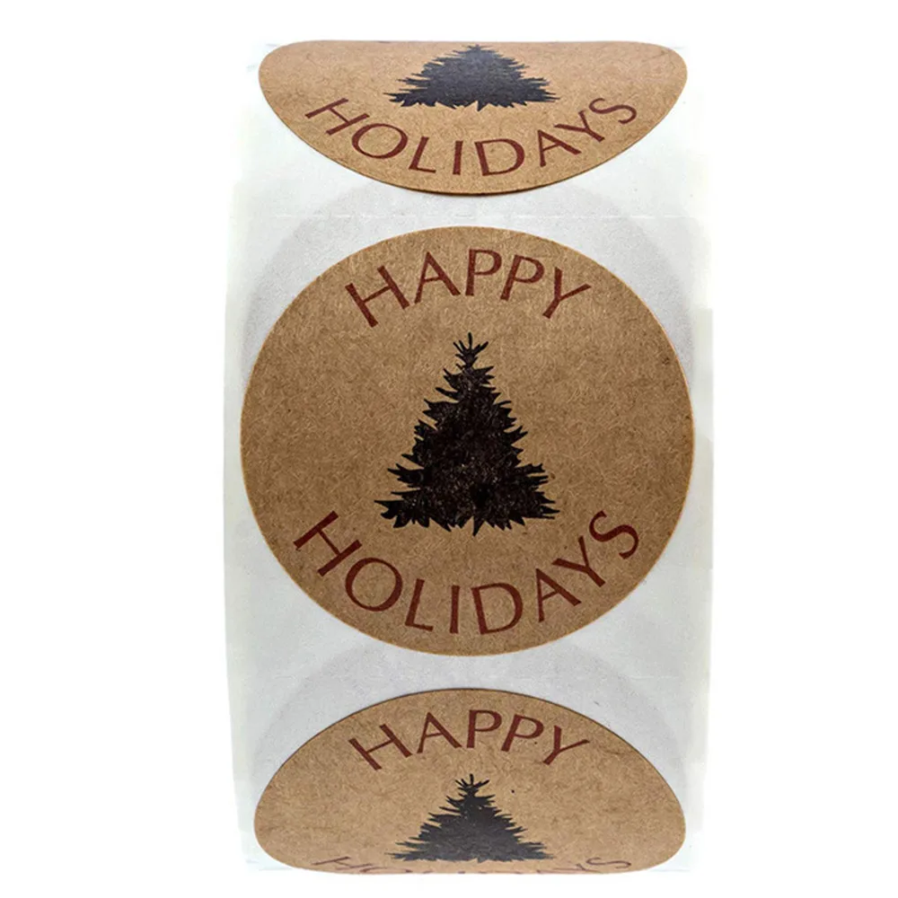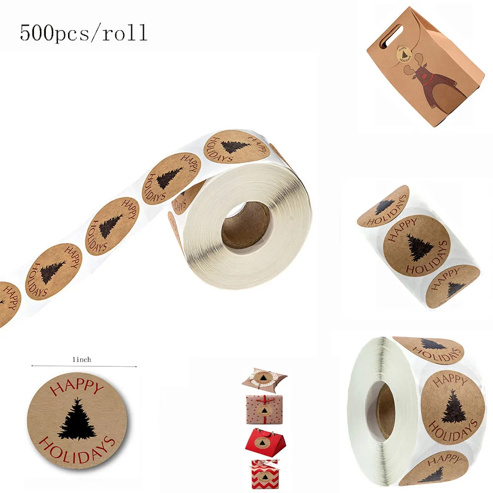 Наклейки на рождественскую елку, 500 шт.рулон, милые Стикеры с праздниками, натуральная Крафтовая бумага, Подарочная коробка, украшение, семейная наклейка