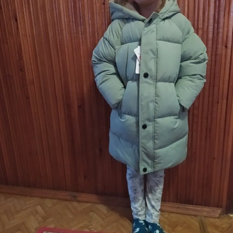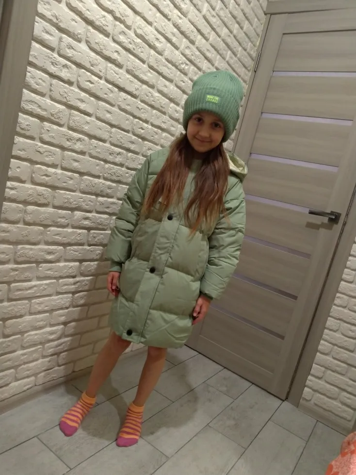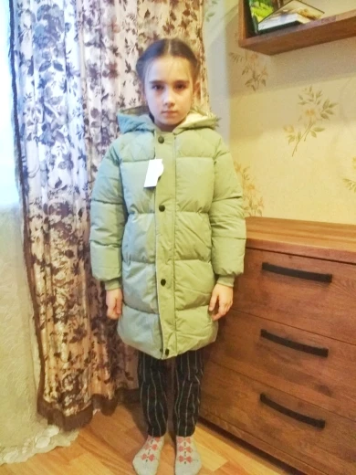 Очень довольна покупкой, сначала беспокоилась, что товар не отправляют сразу) видимо шьют на заказ . Удивительно, что посылка пришла очень быстро, обычно время ожидания занимает месяц или полтора до нашего города, а тут 2 с половиной недели! Поэтому- ожидания компенсировались быстрой доставкой) На рост 96-98 заказала размер 3Т, подошёл идеально, весну проносим, может ещё на осень хватит! У нас зимы очень холодные до -(30)( -35)^ бывает, поэтому куртка только на нашу весну рассчитана. Примерно до -5 градусов я бы оценила, зависит от того, какую кофту вы оденете на ребёнка. Куртка или пальто очень стильное, до колен, смотрится шикарно. Фото дополню позже! Продавцу спасибо большое! Отправил ещё купон на следующий заказ)) Спасибо!