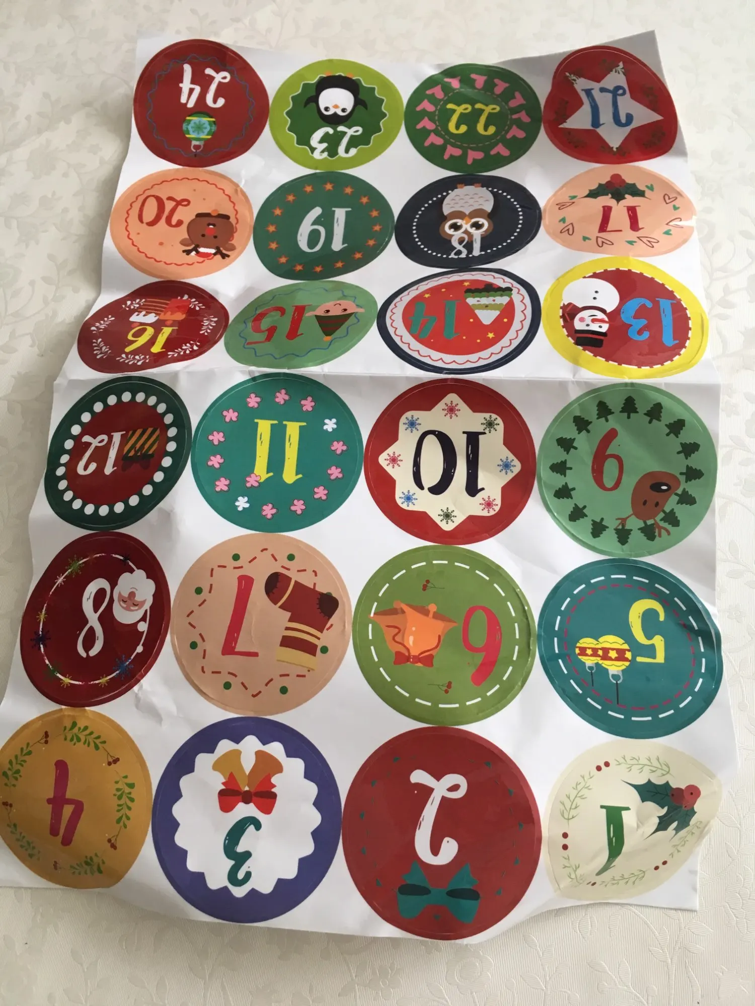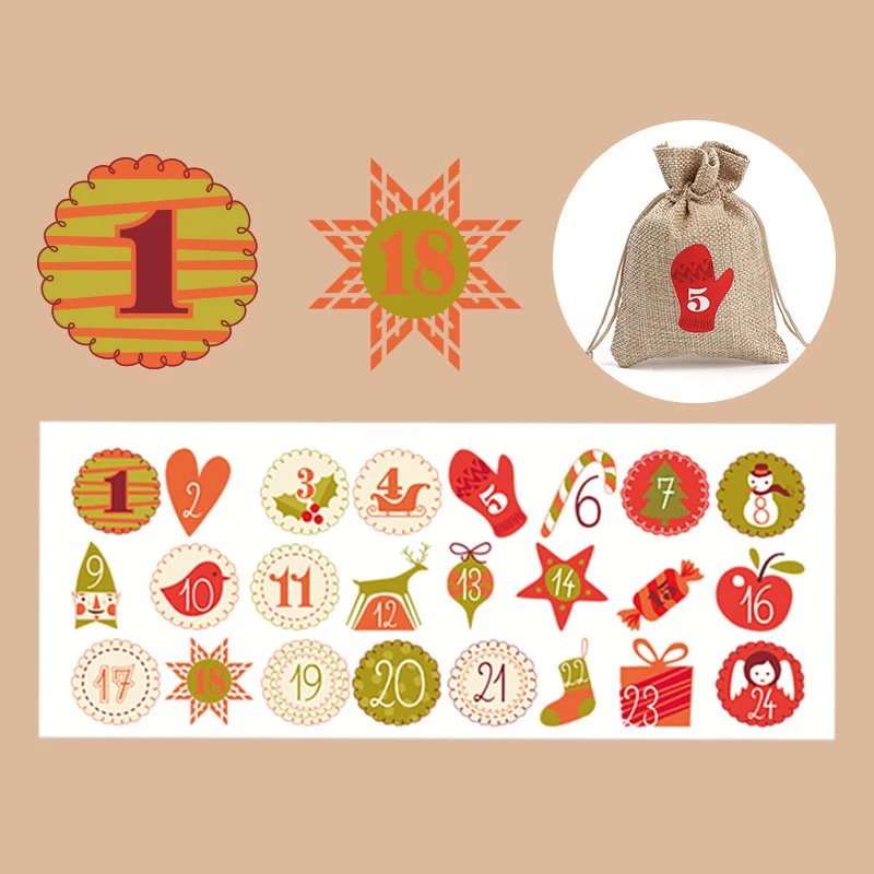 Рождественский Адвент-календарь, 24 шт.компл., цифры, бумажные наклейки, печенье, конфеты, печать, наклейки, рождественские украшения, этикетка для упаковки подарков