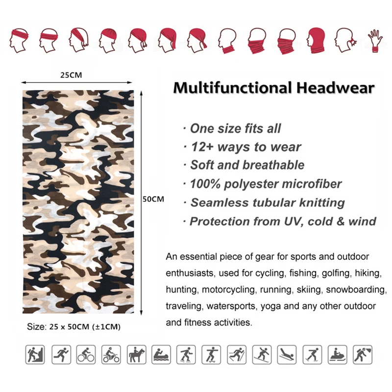 Камуфляжный стиль, бандана, шарф, цифровая печать, для улицы, бандана для верховой езды, защита носа, шарфы, шейные гетры, велосипедная крышка