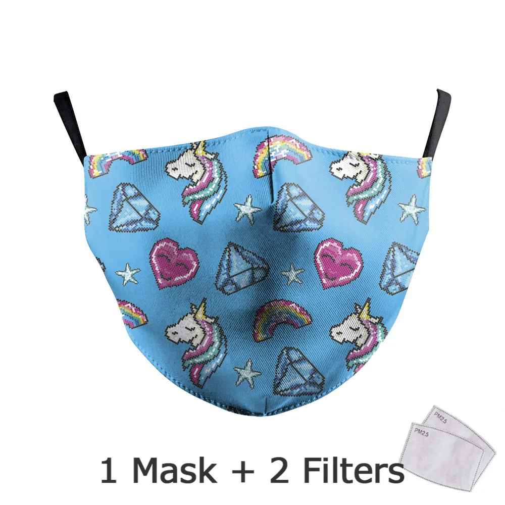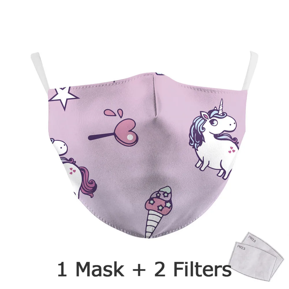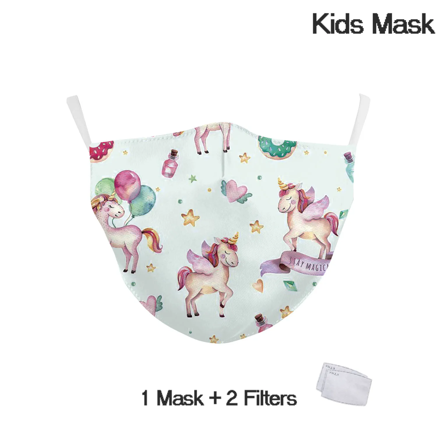 Милая мультяшная Маска единорога, детская маска для лица, маски для взрослых, многоразовая Тканевая маска для лица, регулируемая моющаяся маска для рта