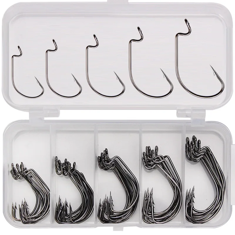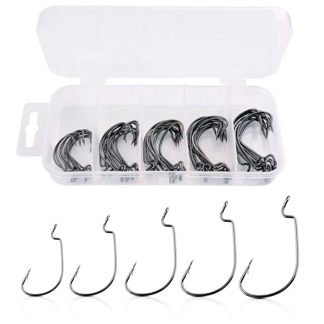 Набор рыболовных крючков, 50 шт., широкий крючок с кривошипом, смещение, рыболовные крючки для Мягкая приманка в виде червей с зазубриной, для ловли карпа, аксессуары для рыболовных снастей