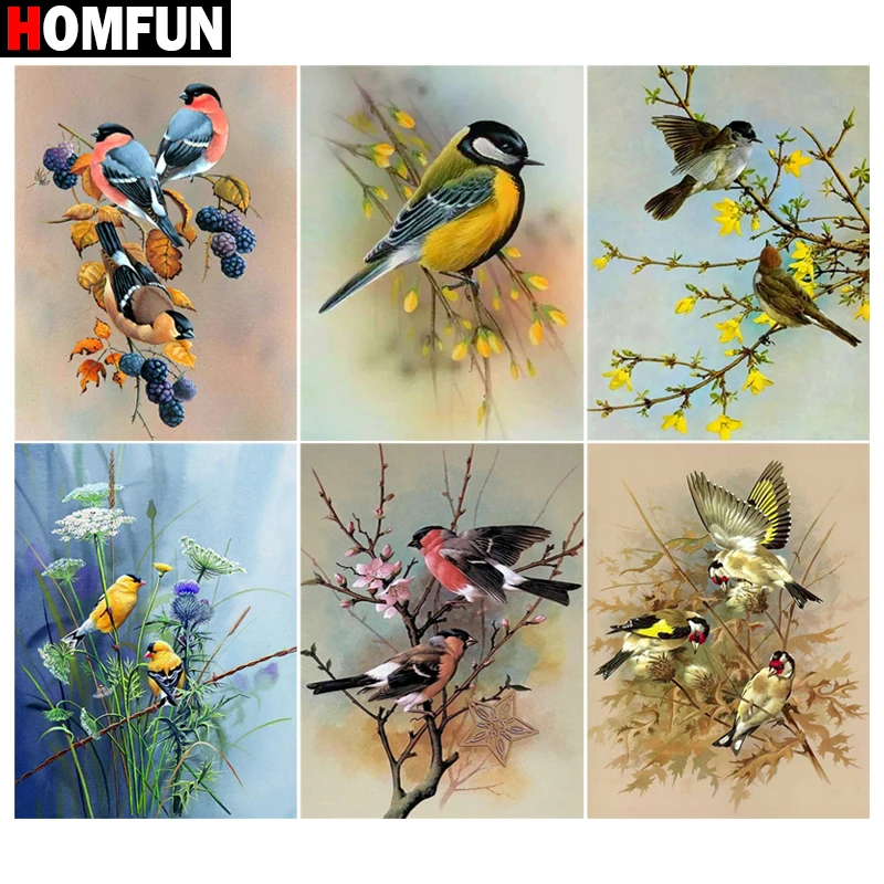 Картина из страз HOMFUN "Птица, Цветочное дерево", 5D, квадратнаякруглая дрель, домашний декор, "сделай сам", алмазная вышивка крестиком