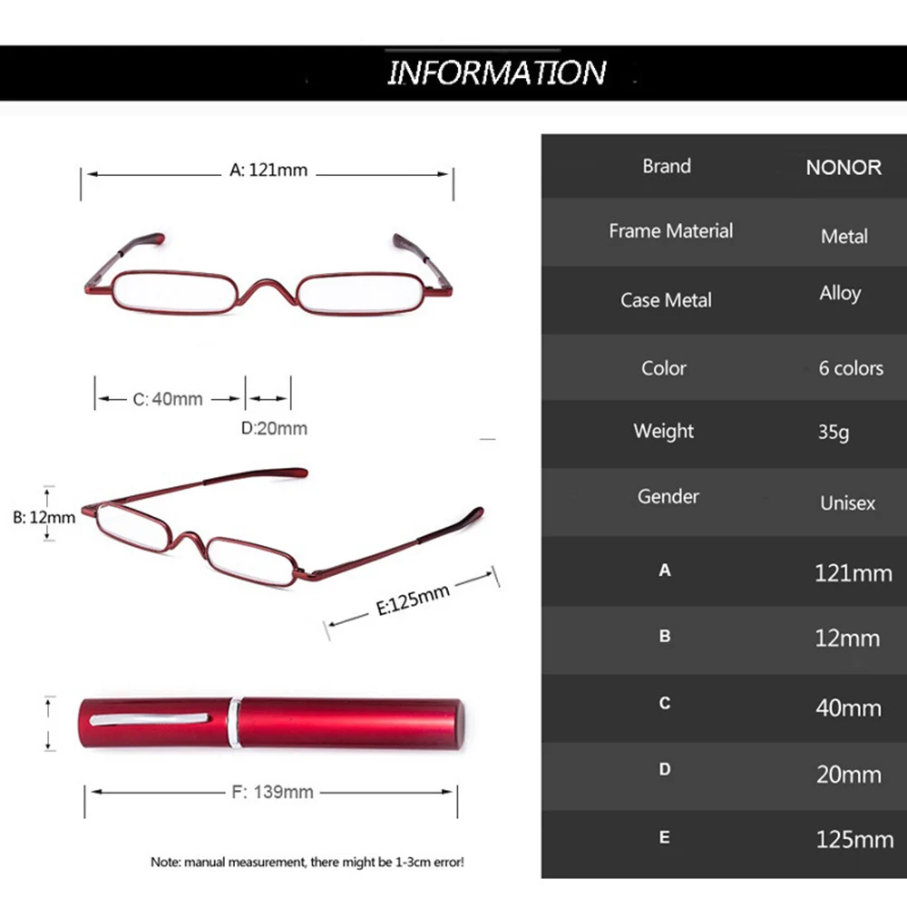 Очки для чтения NONOR компактные портативные для мужчин и женщин, аксессуар 2,0 металлический, 1,5