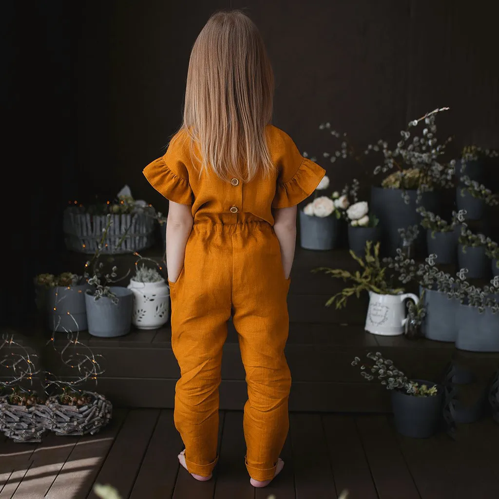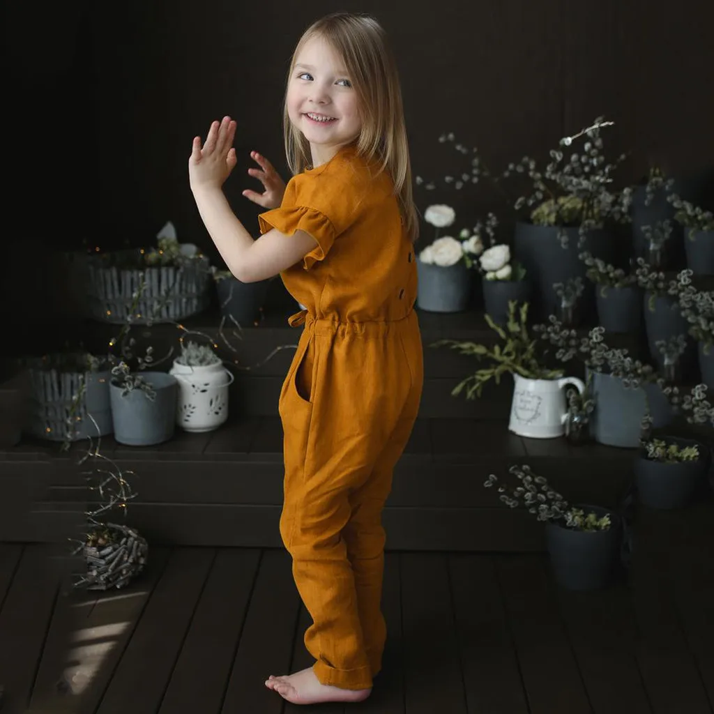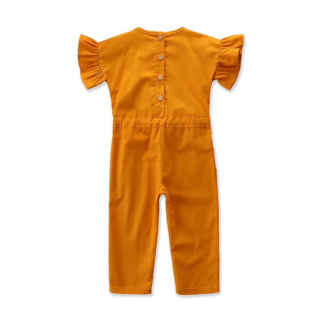Комбинезон детский с коротким рукавом, модный однотонный Ромпер на пуговицах, одежда для девочек, на лето